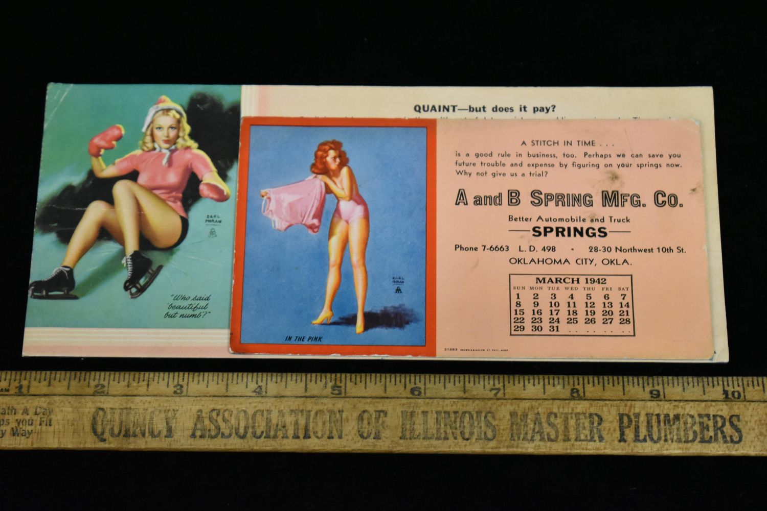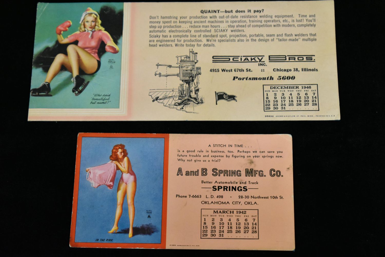 PAIR OF VINTAGE 1940’S PIN UP GIRL INK BLOTTERS CALENDARS, CHICAGO ILLINOIS & OKLAHOMA CITY, 1942 & 1946, SEMI-NUDE PINUPS