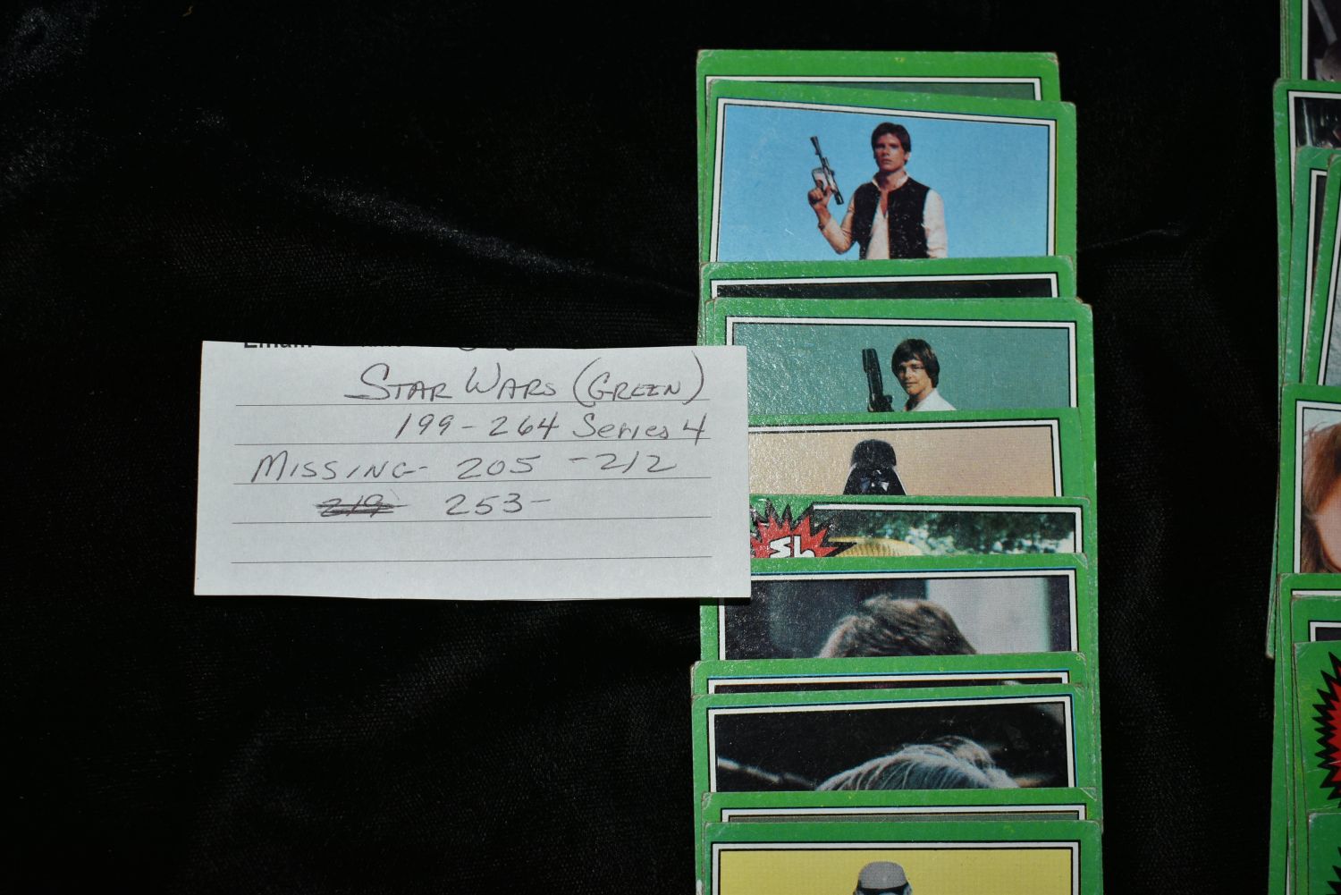 Star Wars Series 4 Collector Cards Cards 199-264 Missing 205, 212, 253. All in good to excellent condition. Cards are 3 1/2" by 2 1/2"