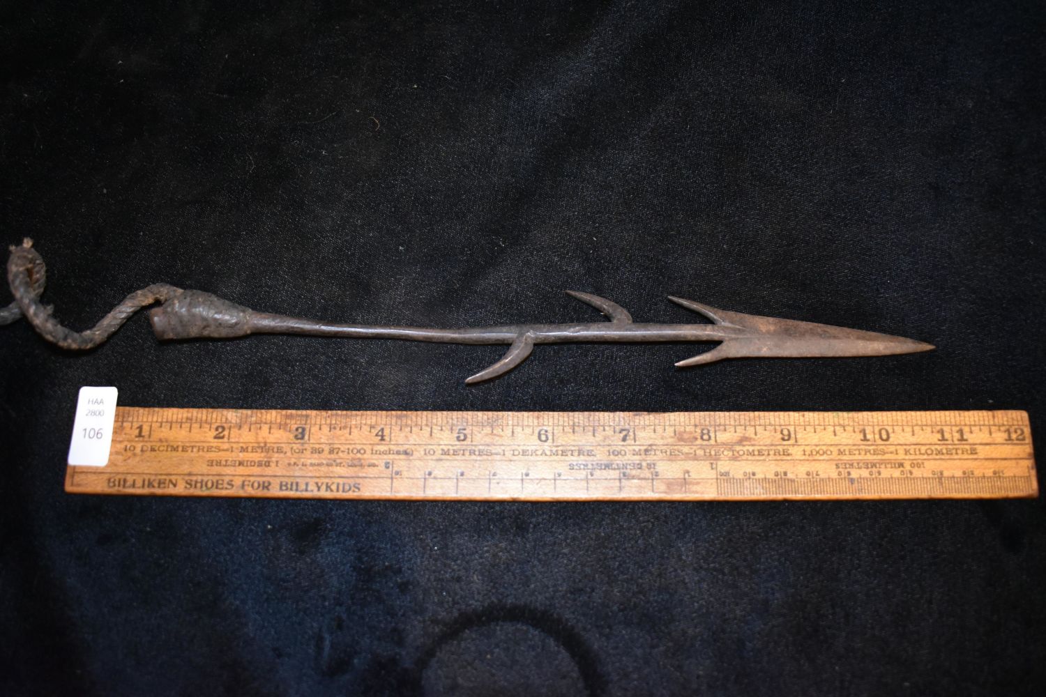 10 1/4" Barbed African Fishing Spear Head, African Relics, 1800’s, Antique