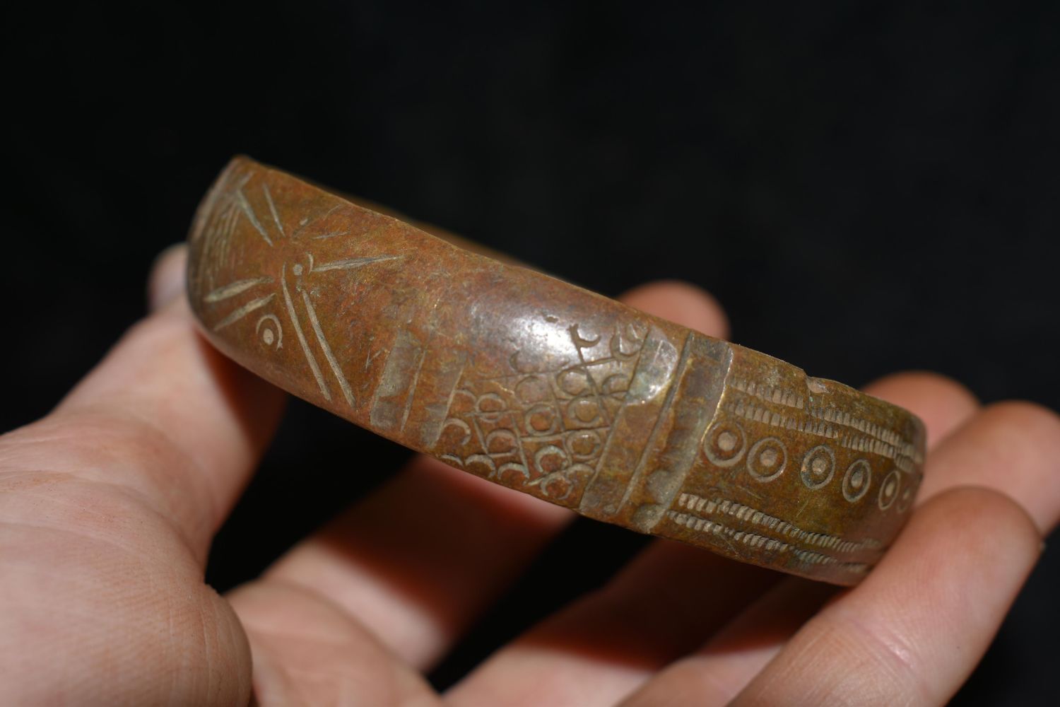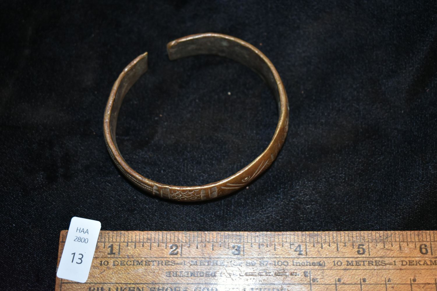 3" Engraved African Brass / Bronze Cuff, African Relics, Jewelry, 1800’s, Antique