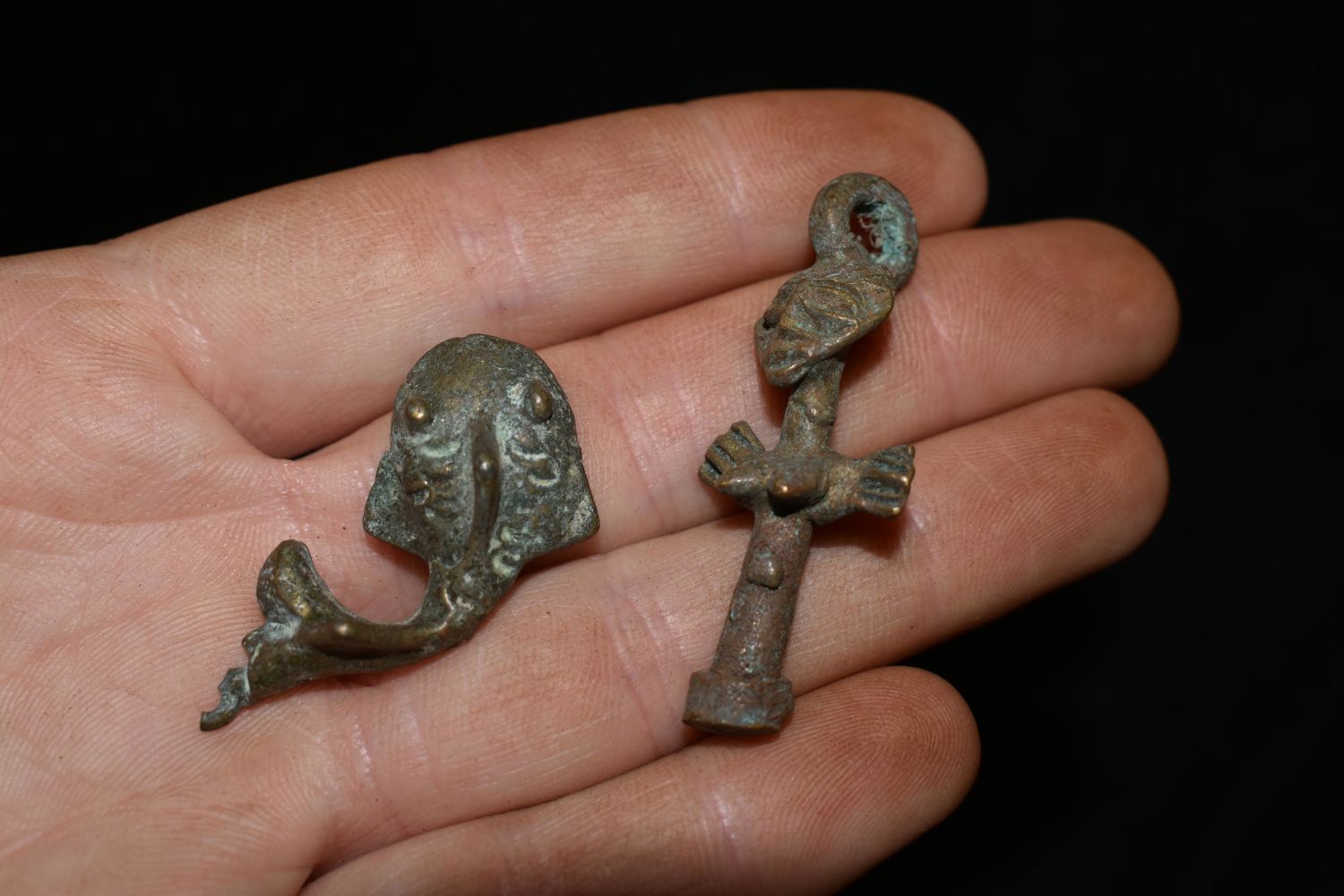 Pair of 1 1/2" African Brass / Bronze cast Pendants, African Relics