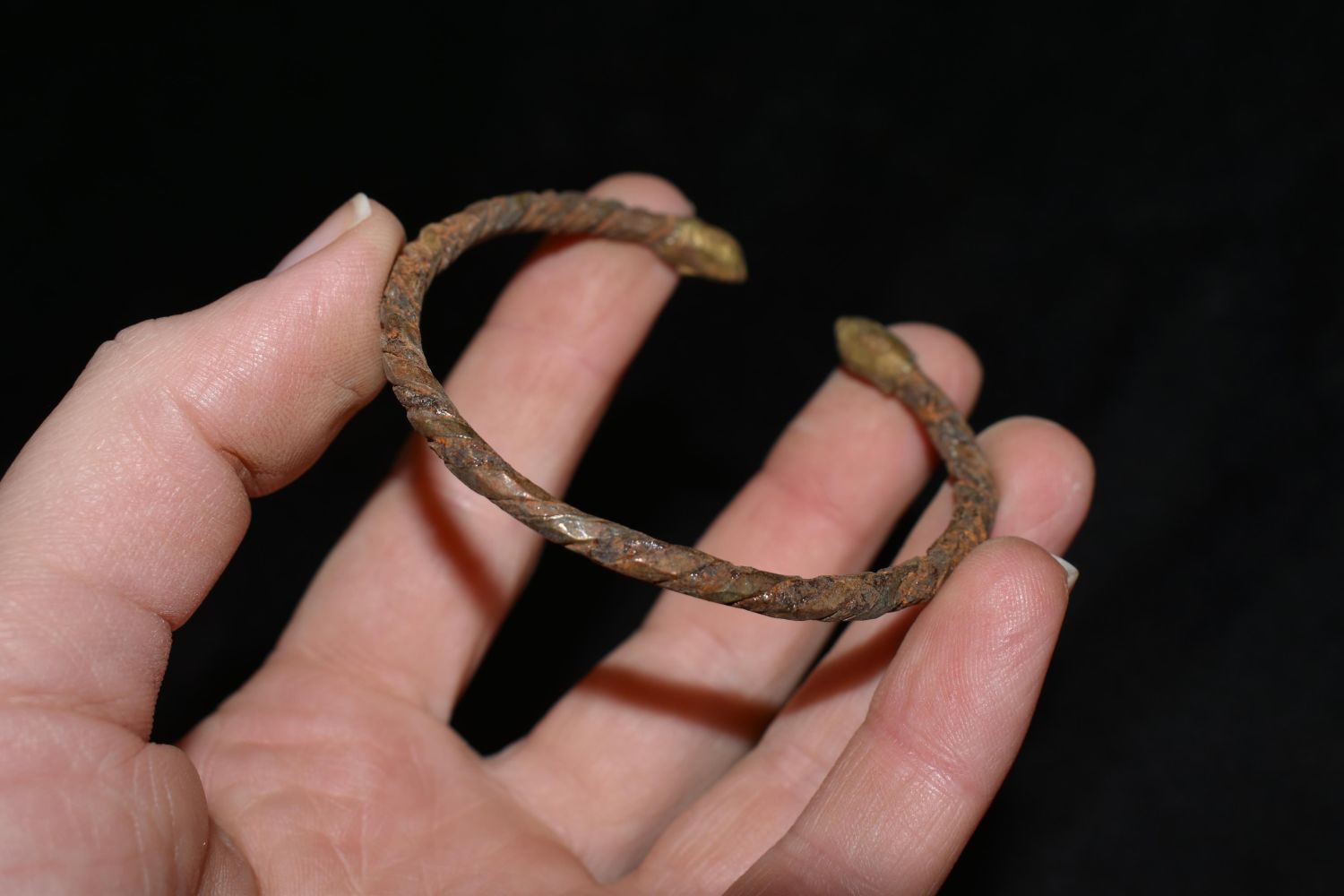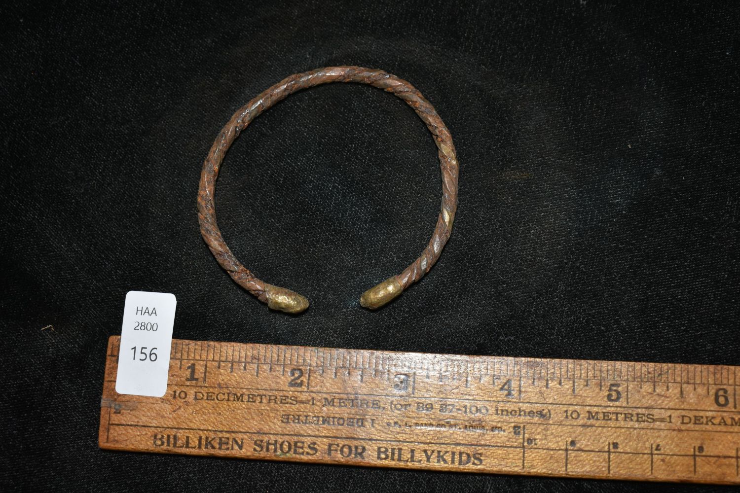 2 1/2" Twist Design With Gold Capped Ends Bronze / Brass African Cuff, African Relics, 1800’s, Antique