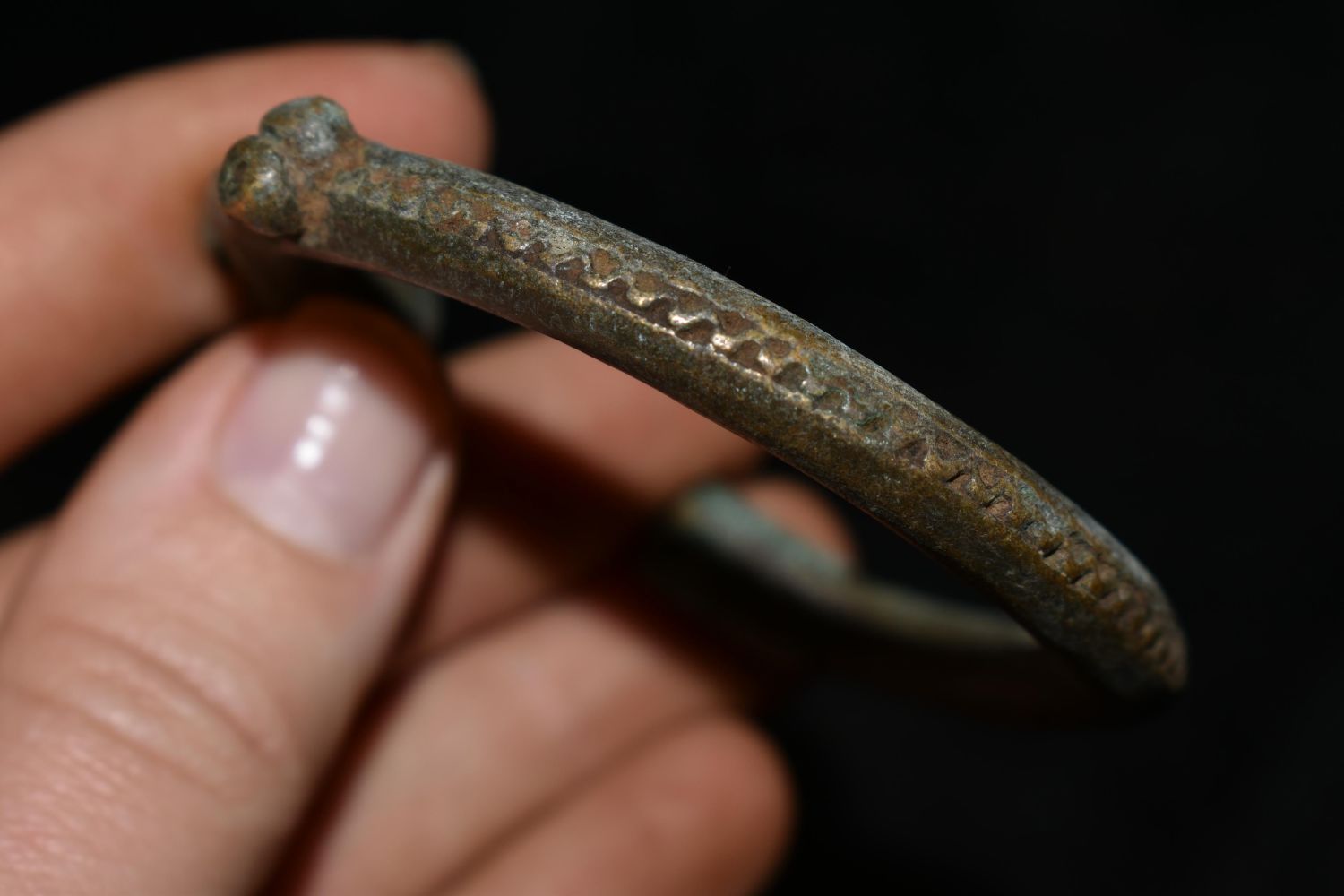2 2/3" Embellished African Brass / Bronze Cuff, African Relics, 1800’s, Antique