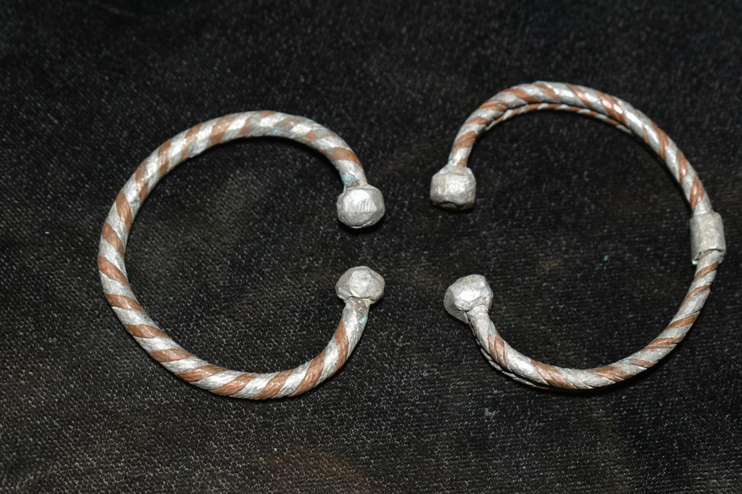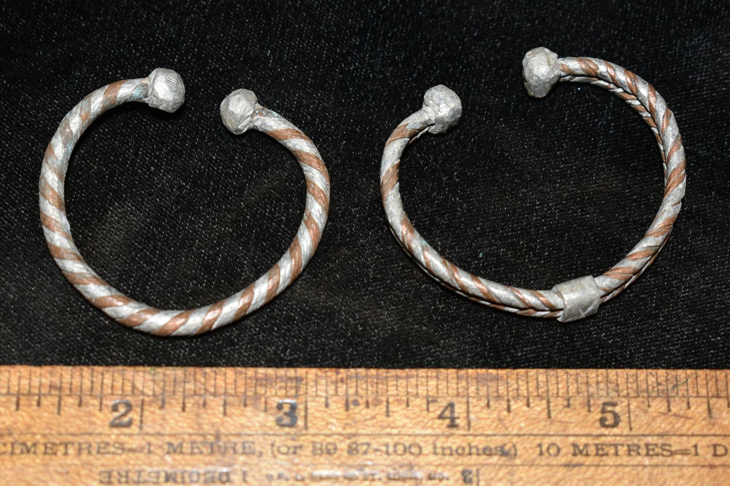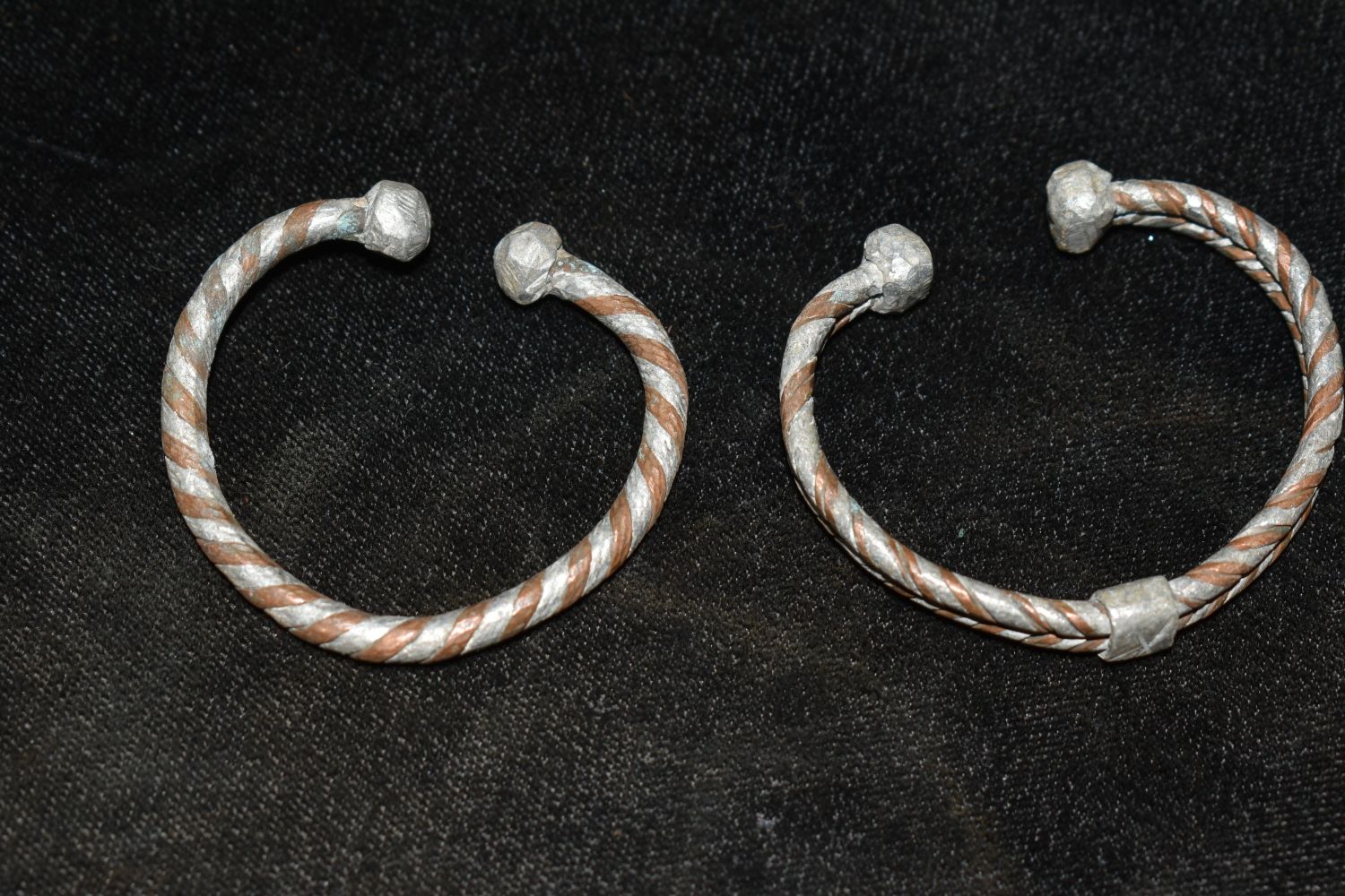 Pair of Small African Brass / Bronze Braided Cuffs, African Relics