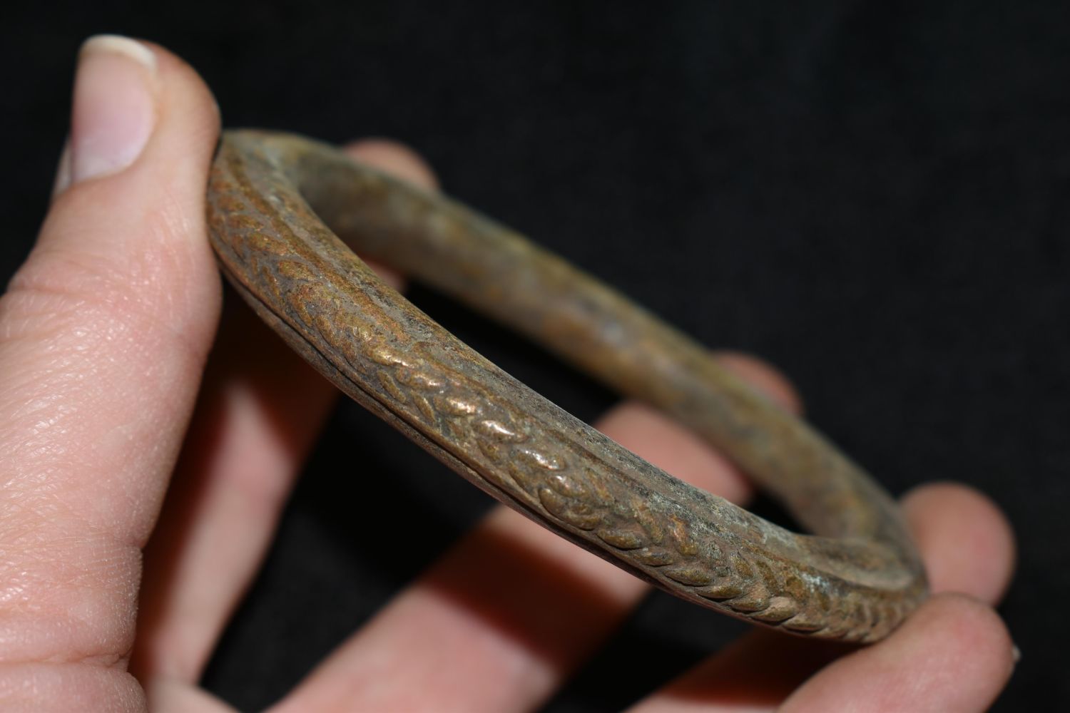 3 1/3" Braid Pattern Bronze/ Brass African Cuff, African Relics, 1800’s, Antique