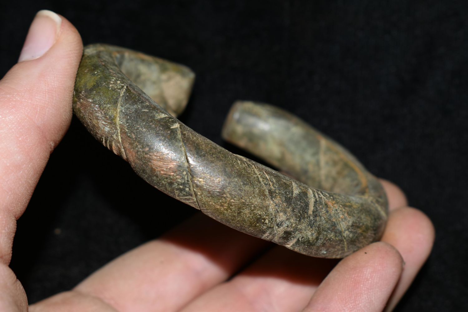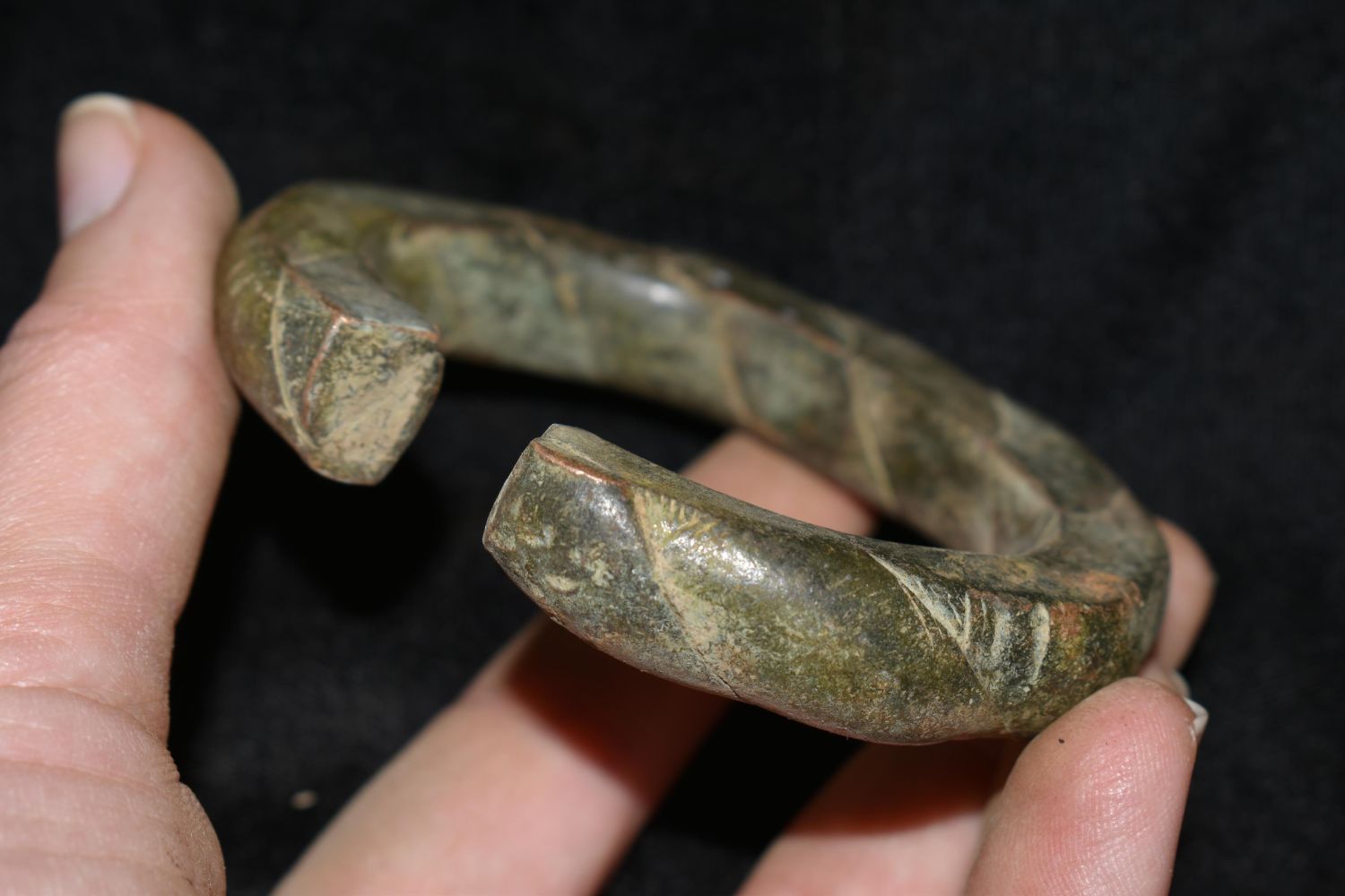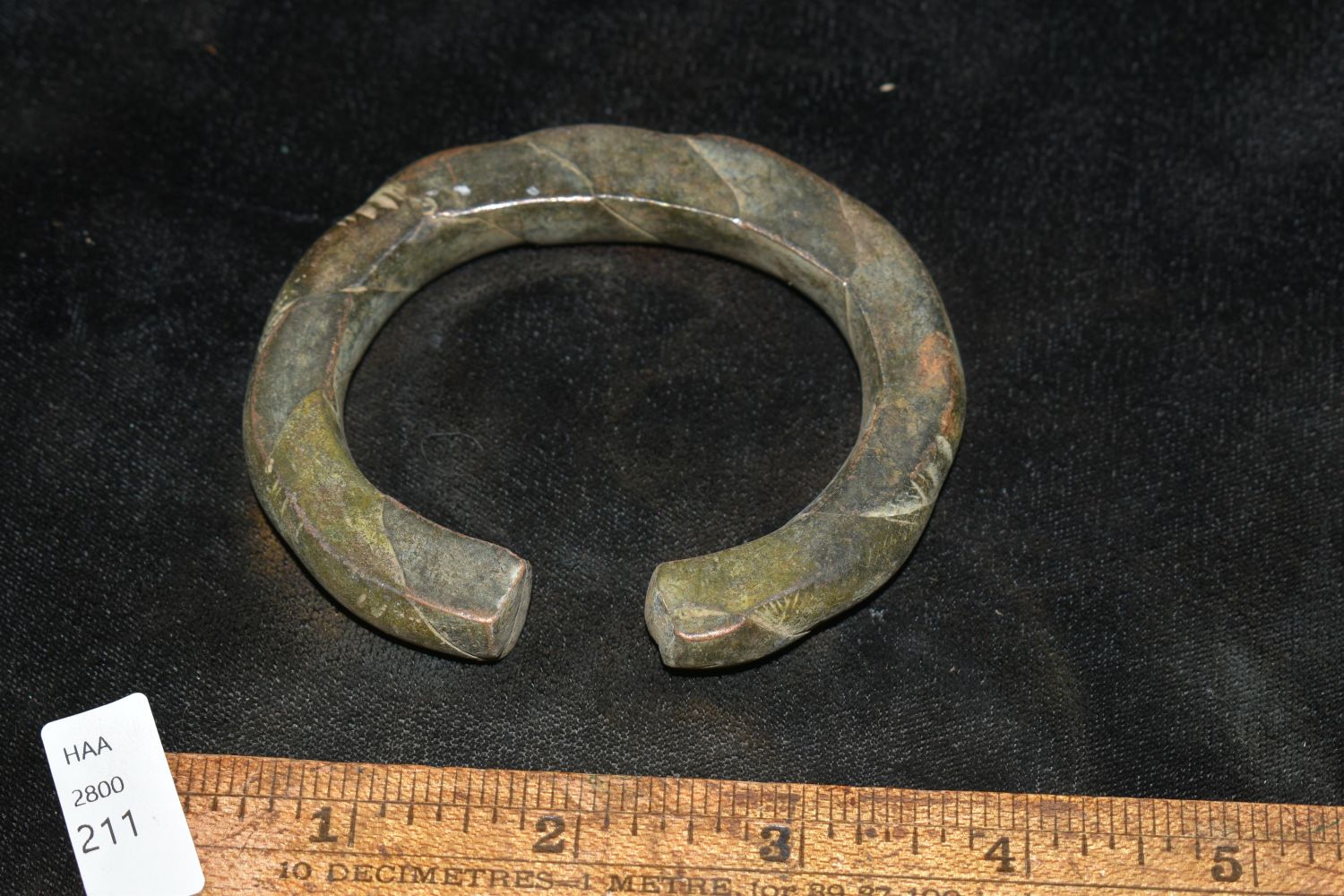 3 1/4" Engraved Bronze/ Brass African Cuff, African Relics, 1800’s, Antique
