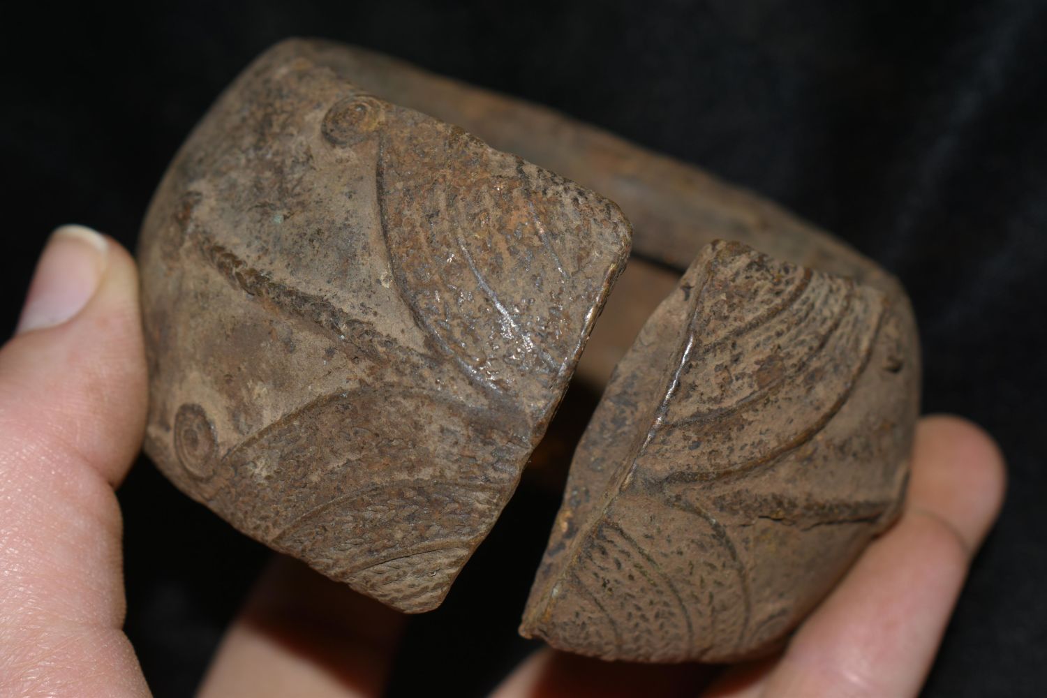3 5/8" Large Embellished Bronze/ Brass African Cuff, African Relics, 1800’s, Antique