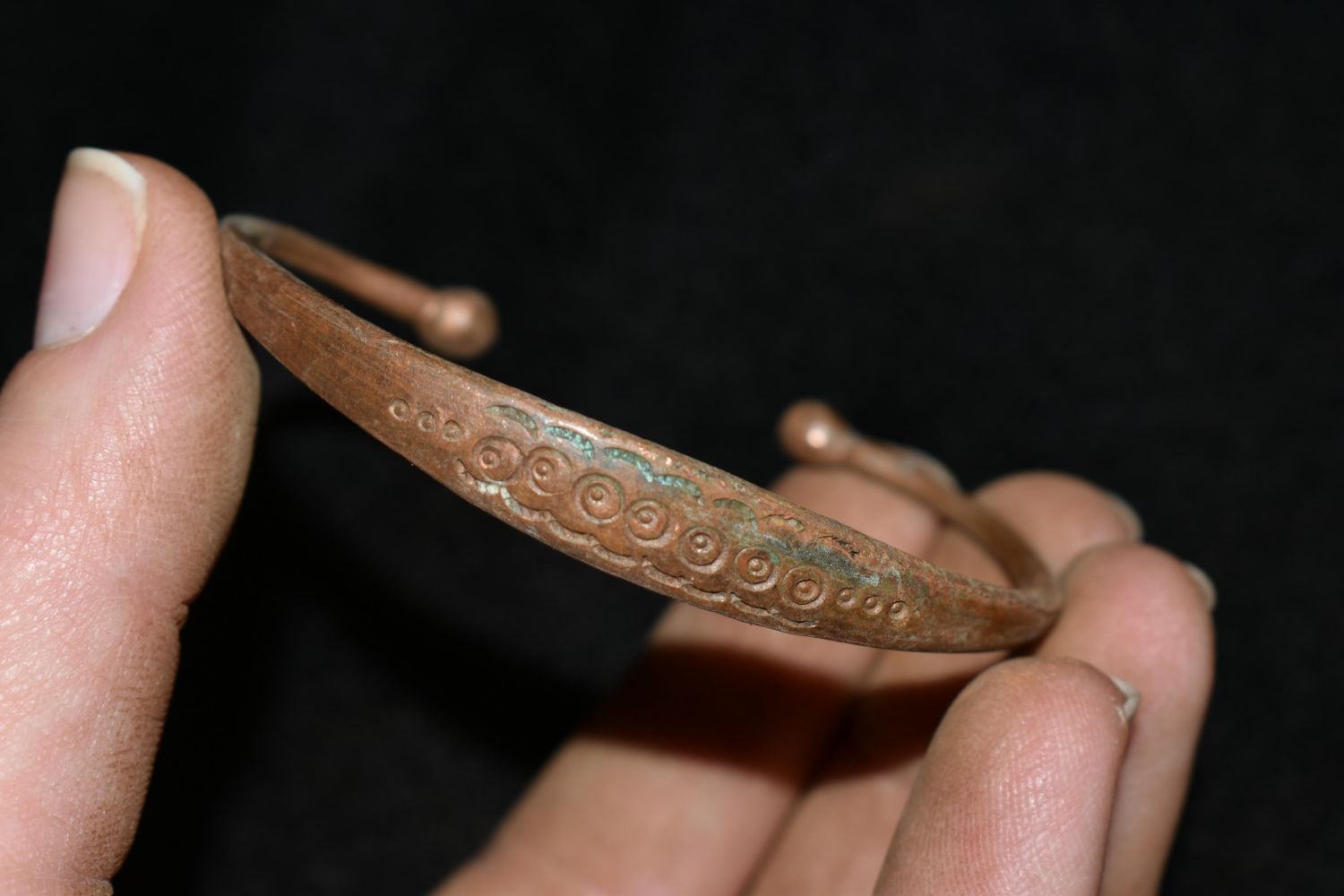 2 2/3" Engraved Bronze/ Brass African Cuff, African Relics, 1800’s, Antique