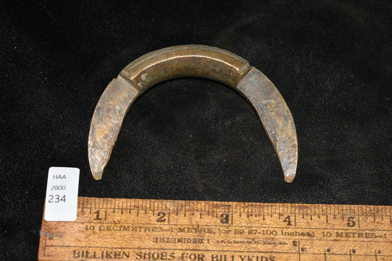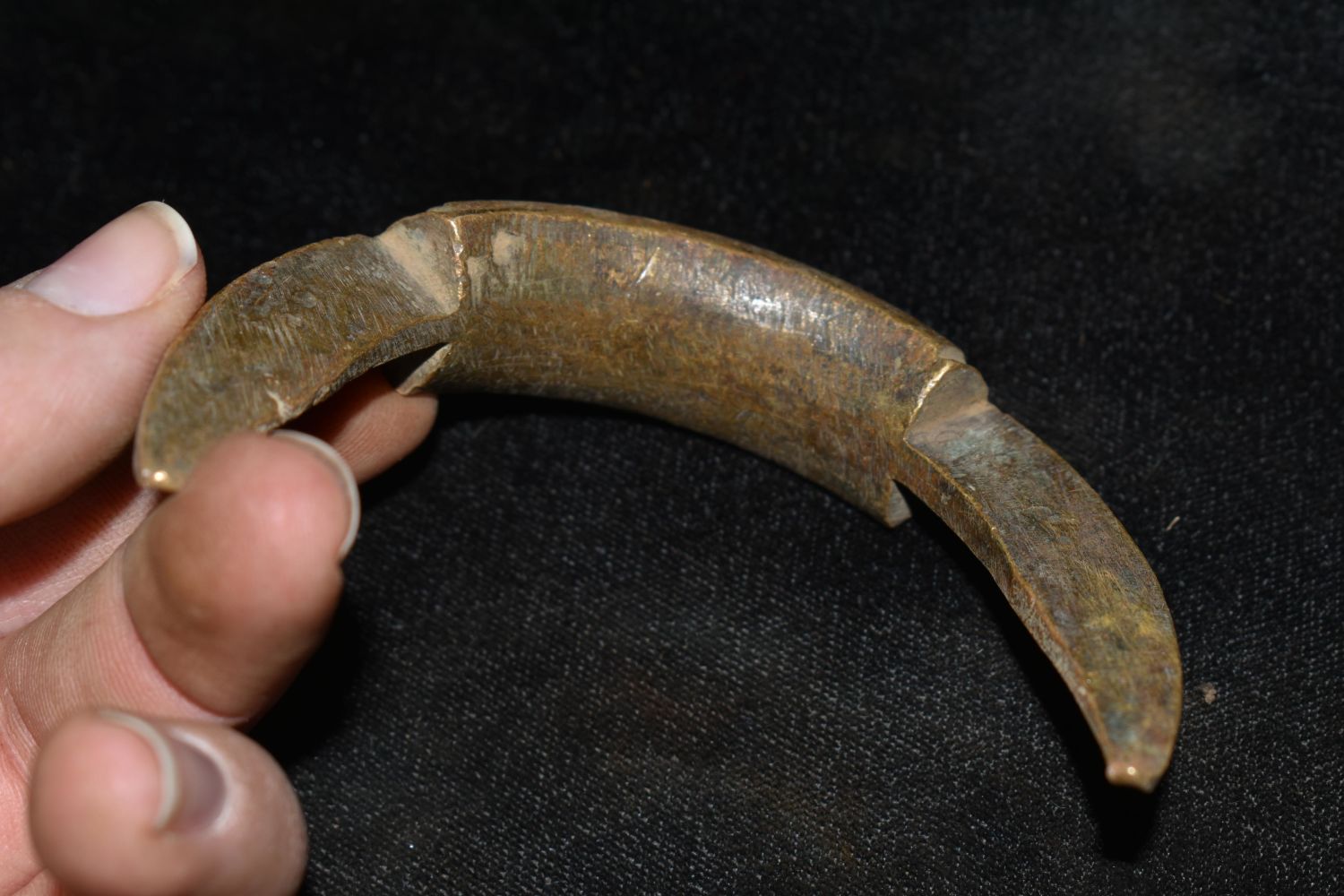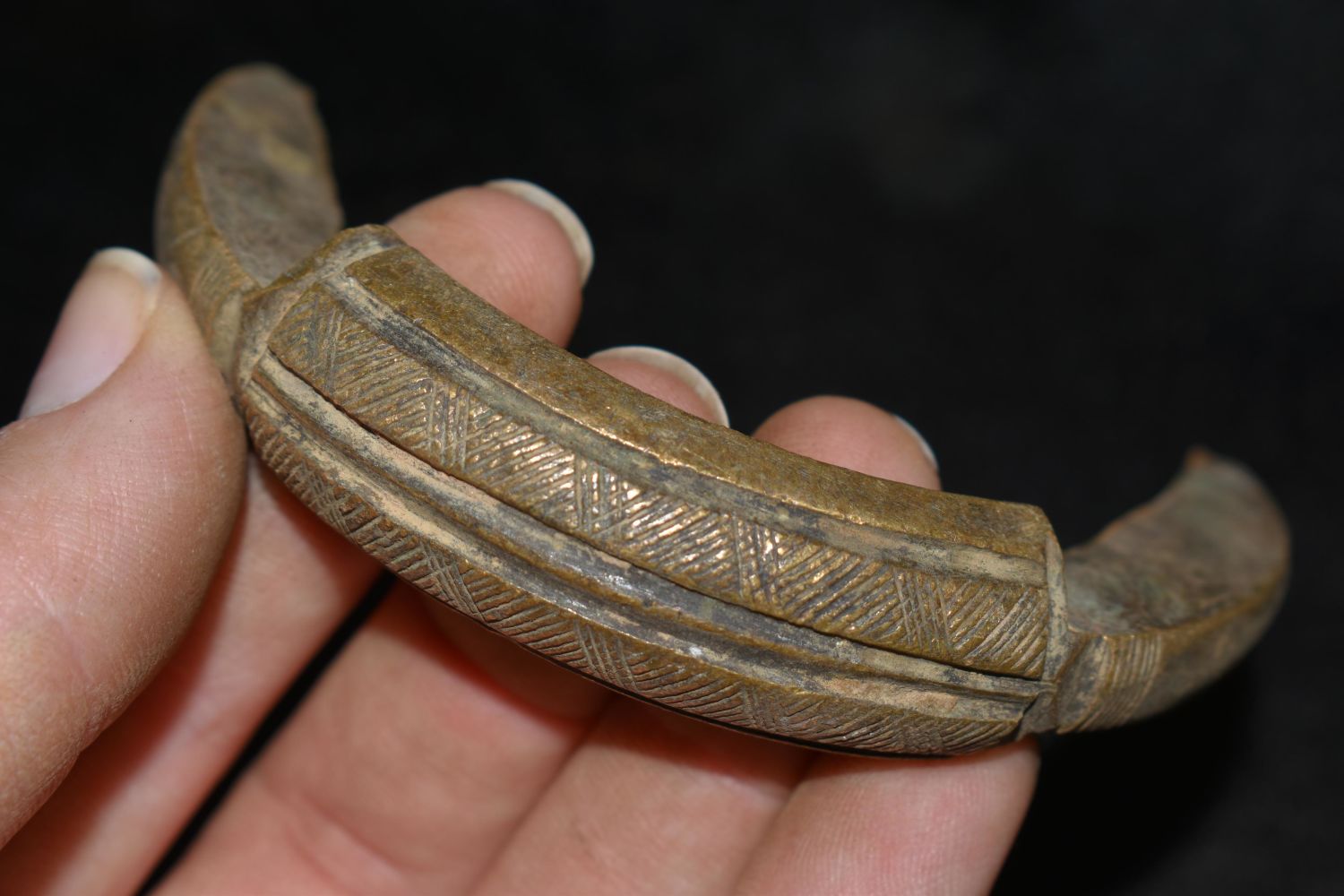 3 1/2" Intricately Engraved Half of Interlocking Bronze/ Brass African Cuff, African Relics, 1800’s, Antique