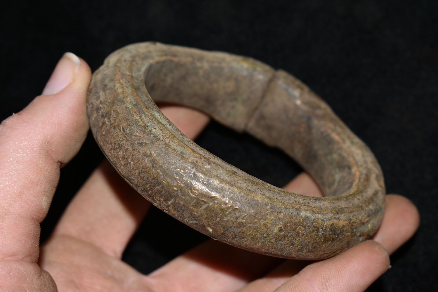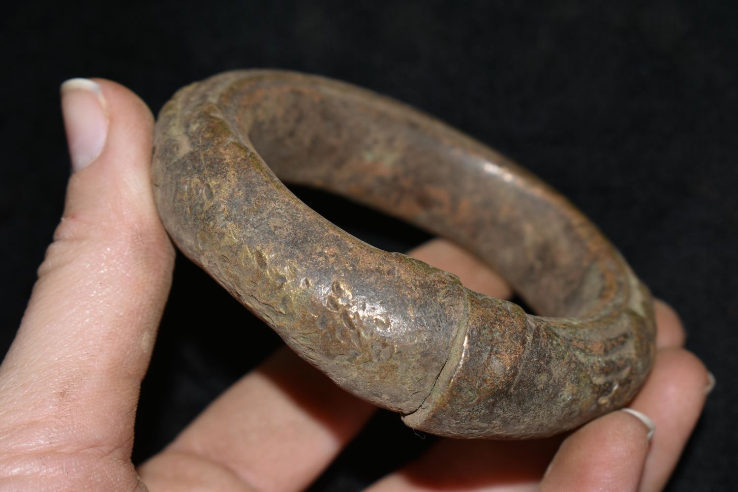 3 1/2" Worn Design Bronze/ Brass African Cuff, African Relics, 1800’s, Antique
