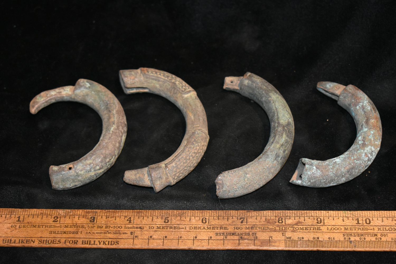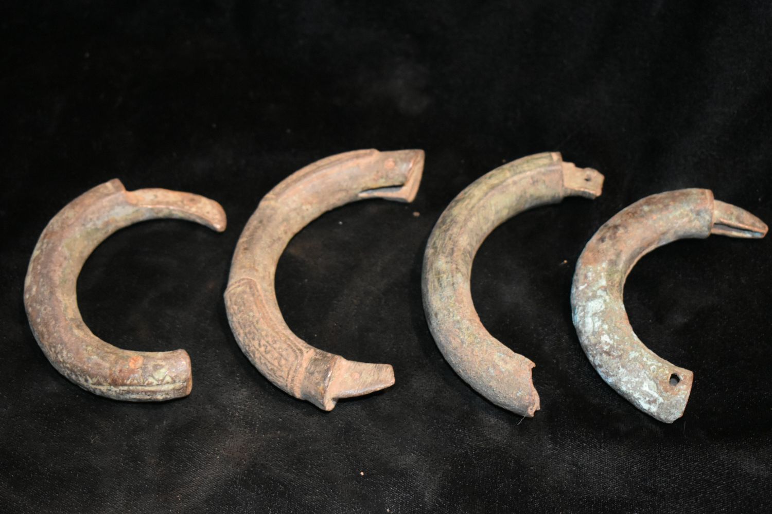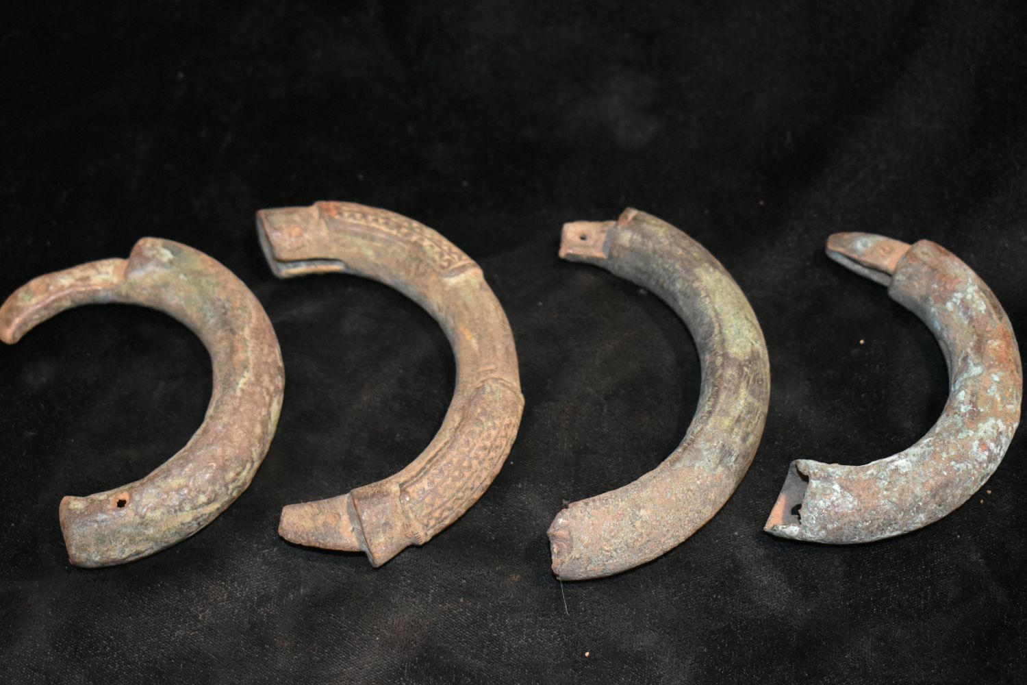 Lot of 4 Interlocking Bronze/ Brass African Cuff Halves, African Relics, 1800’s, Antique