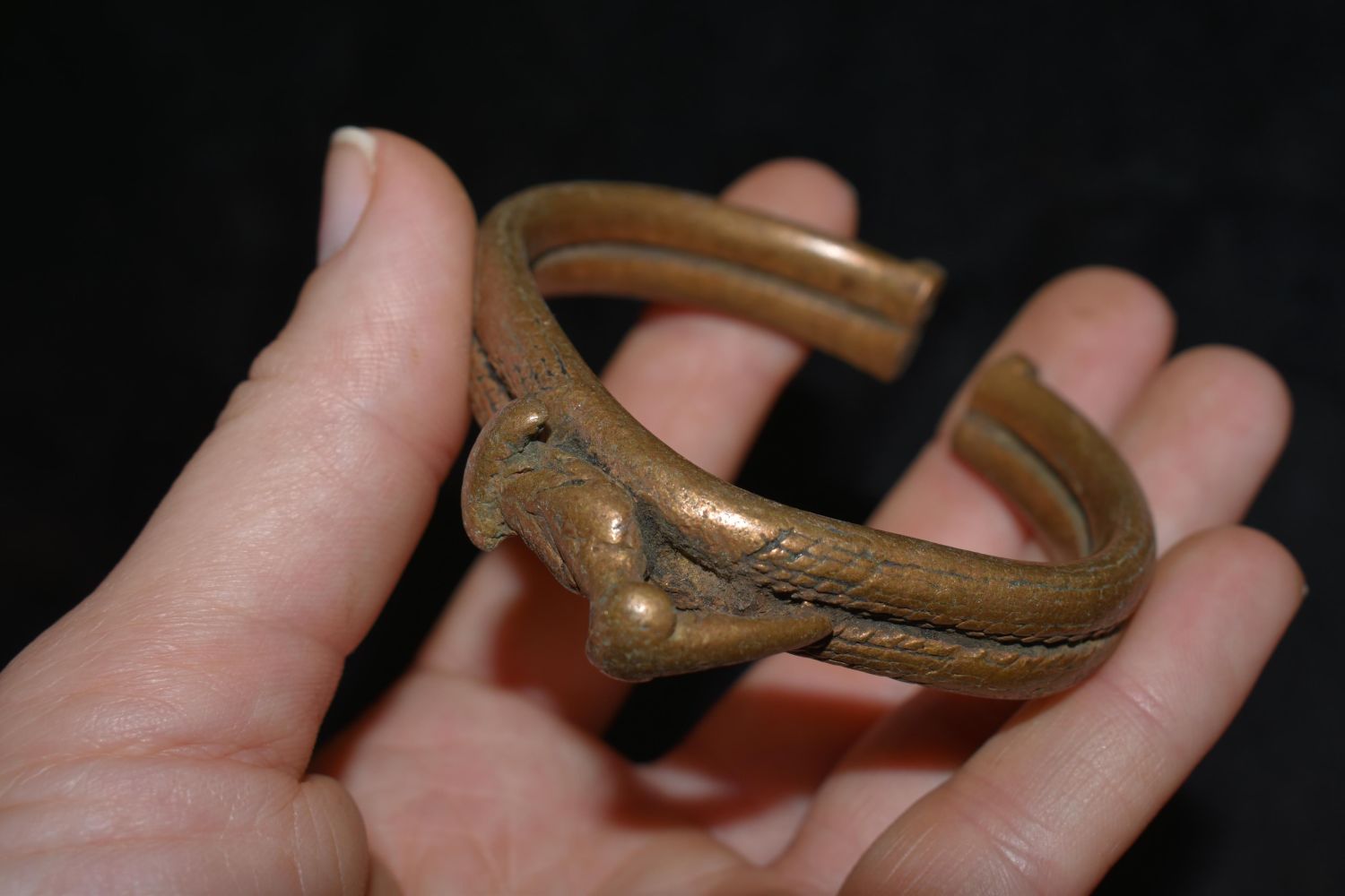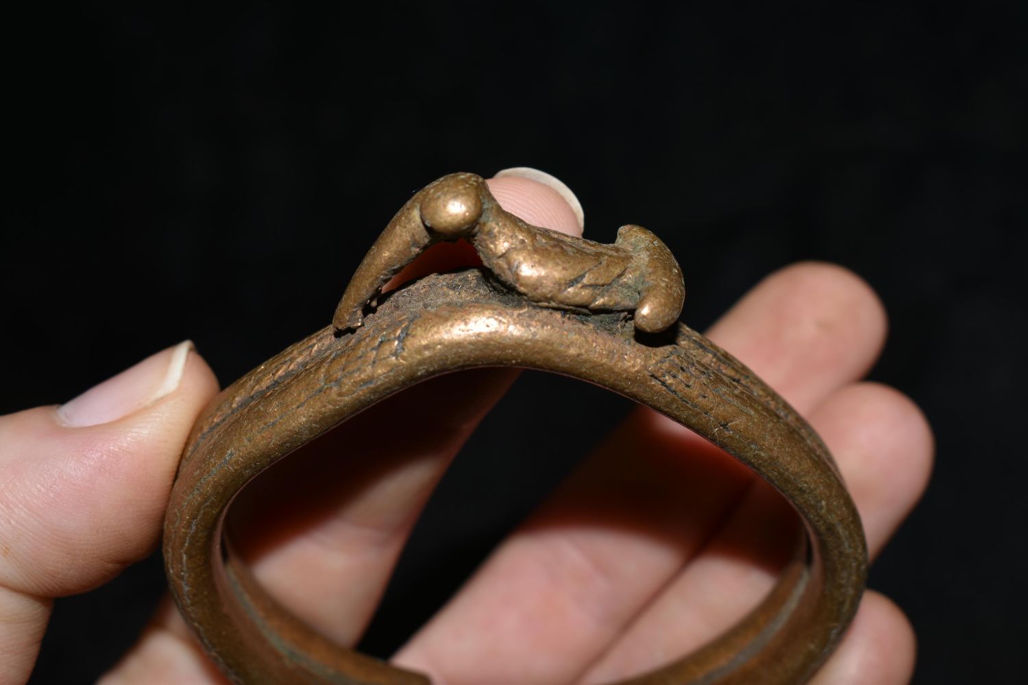 2 7/8" African Brass / Bronze Cuff With Bird, African Relics, 1800’s, Antique