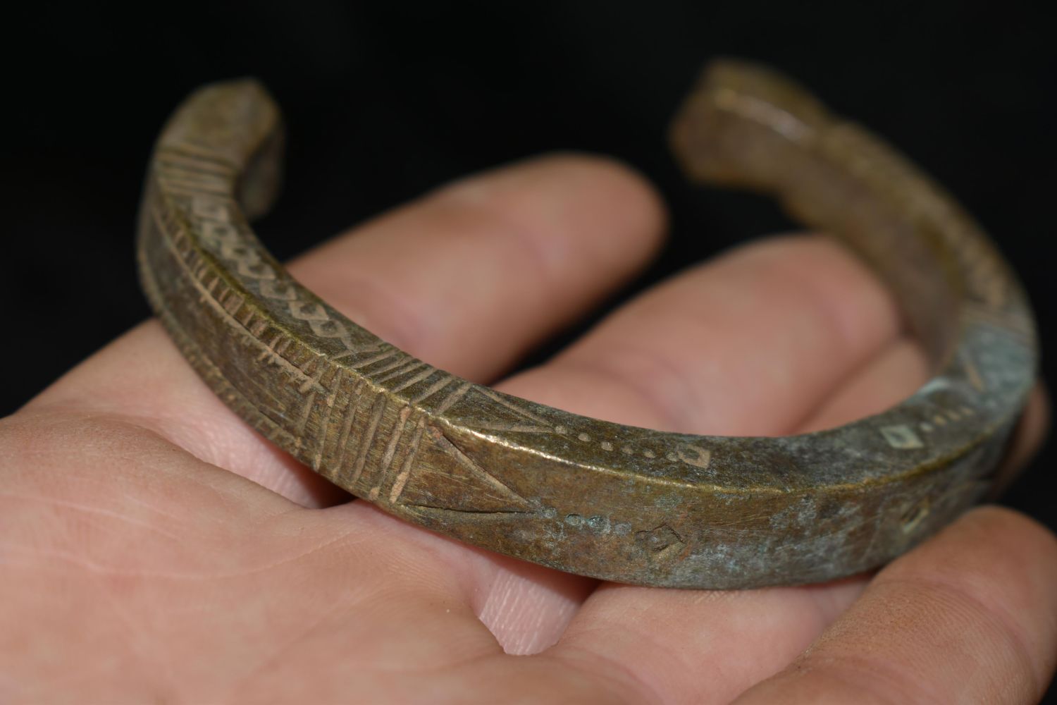 3" African Brass / Bronze Engraved Cuff, African Relics, 1800’s, Antique , Jewelry