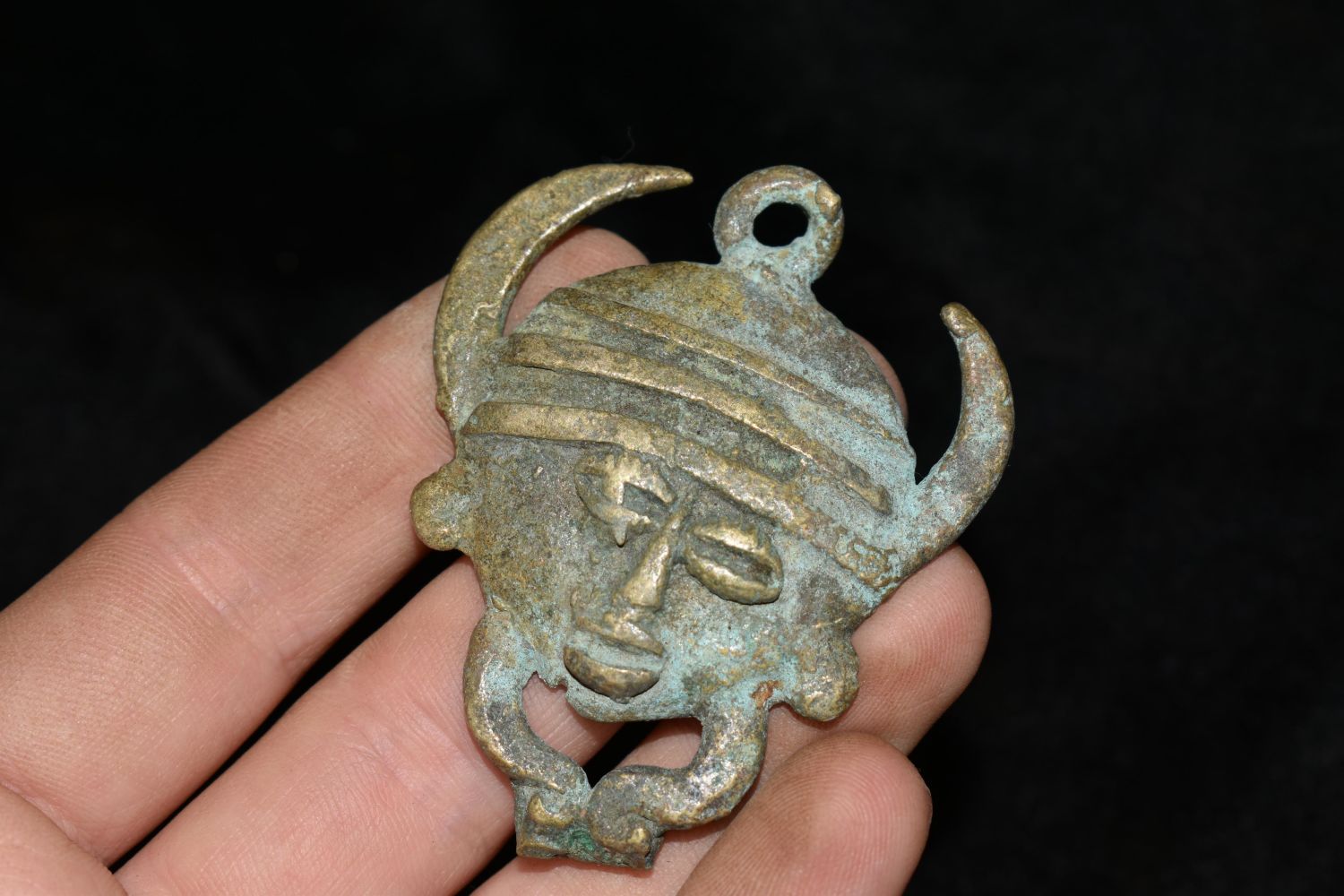 2 1/2" African Brass / Bronze Face Pendant, African Relics, 1800’s, Antique