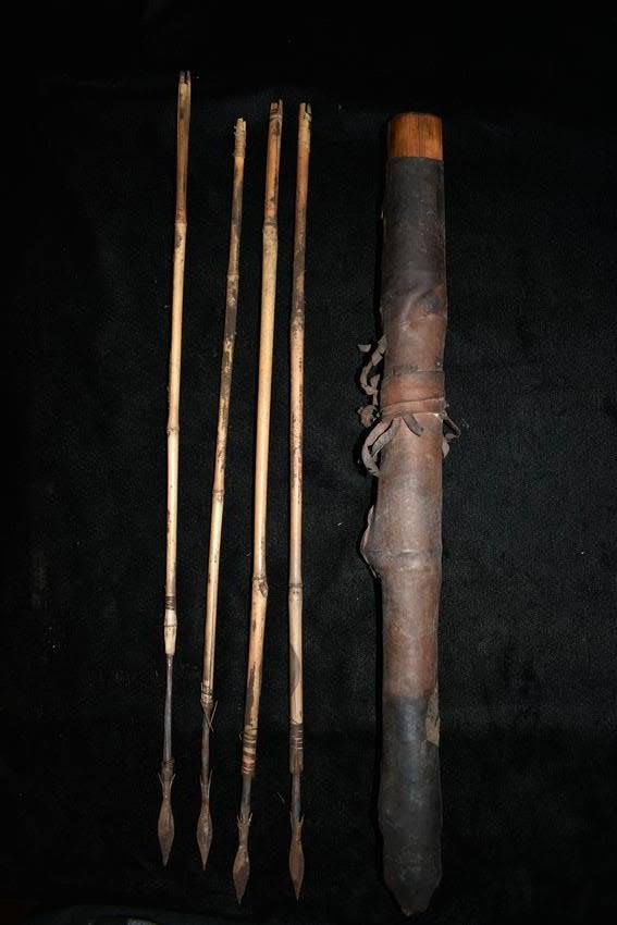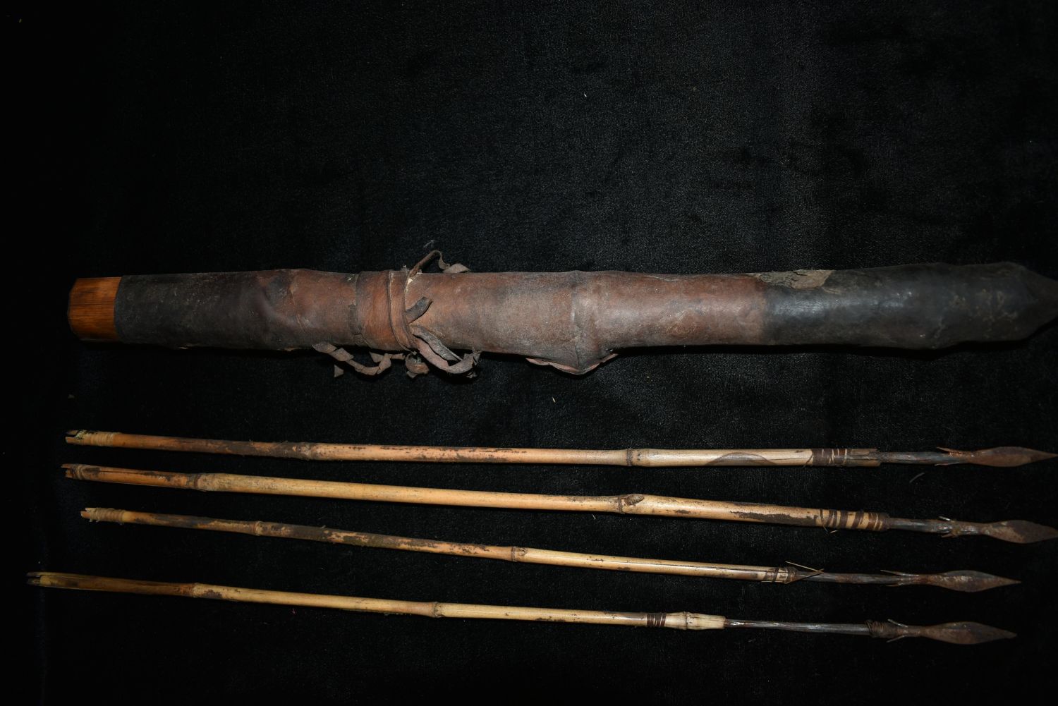 4 African Bamboo Arrows with Iron Arrowheads and African Bamboo Sheath, Very Unique Item, Guaranteed Authentic/Un-Altered