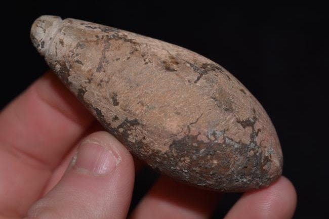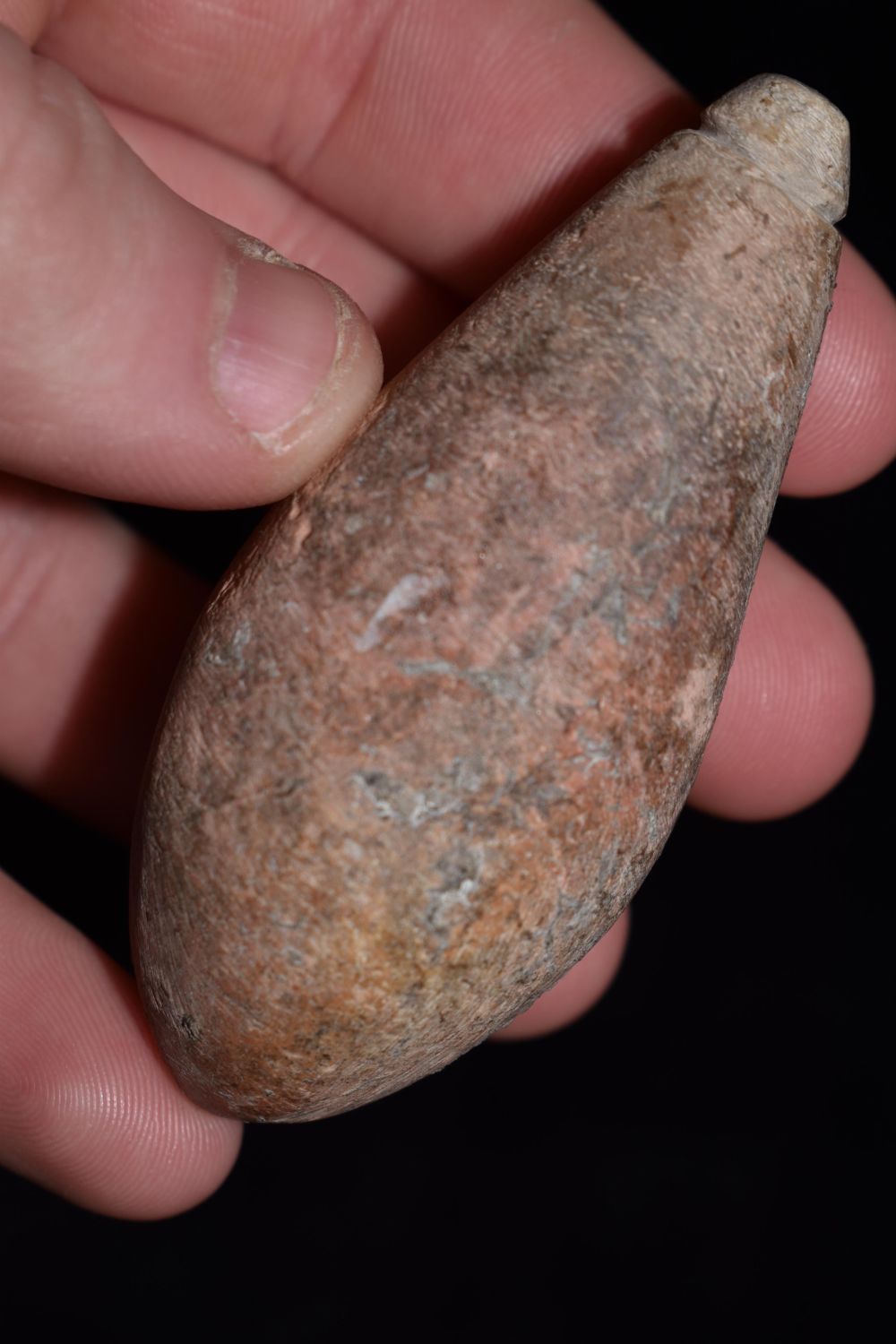 2 3/4″ Limestone Plummet found by Dan Simmons, Lincoln Co., Missouri Authentic Native American Artifact