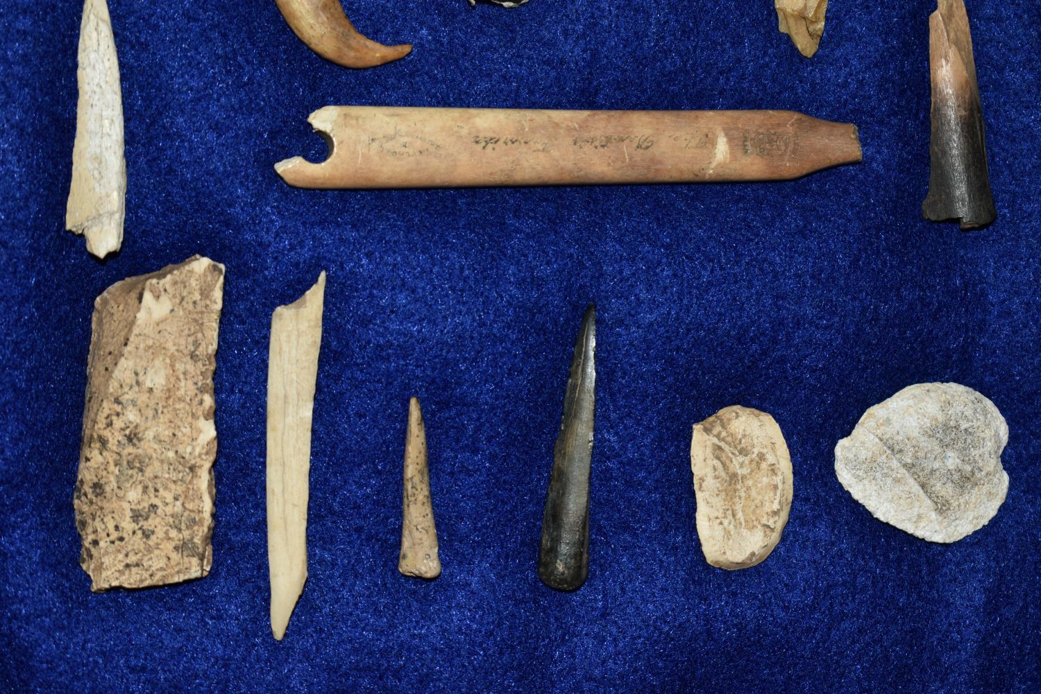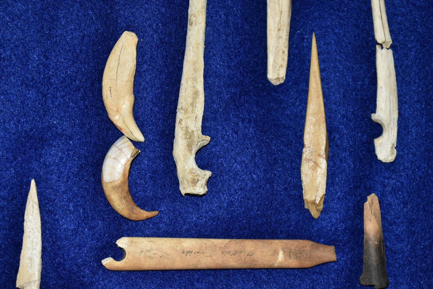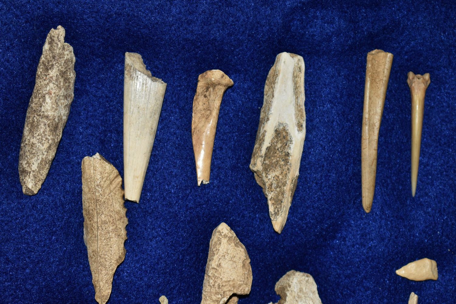 12″ x 8″ Frame Containing 12 Bone/Shell Pieces and 13 Copper Artifacts found by Steve Koch in Scott Co., Illinois Authentic Native American Arrowhead