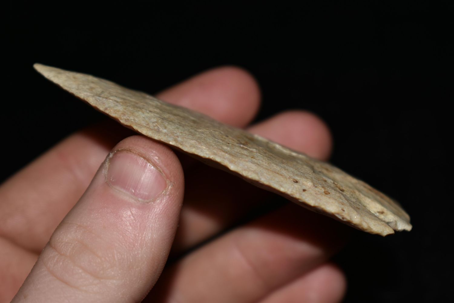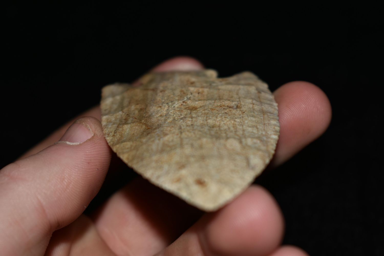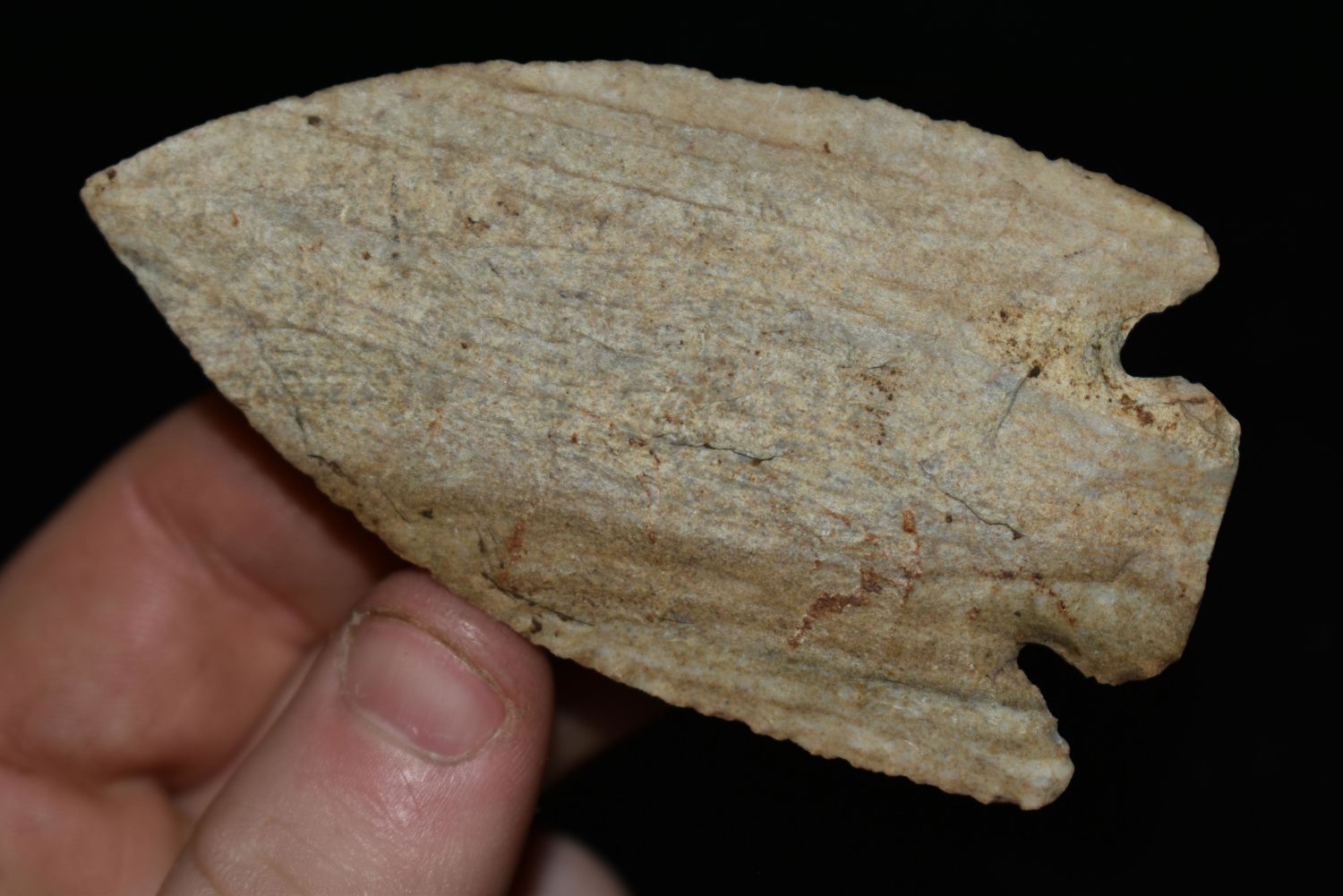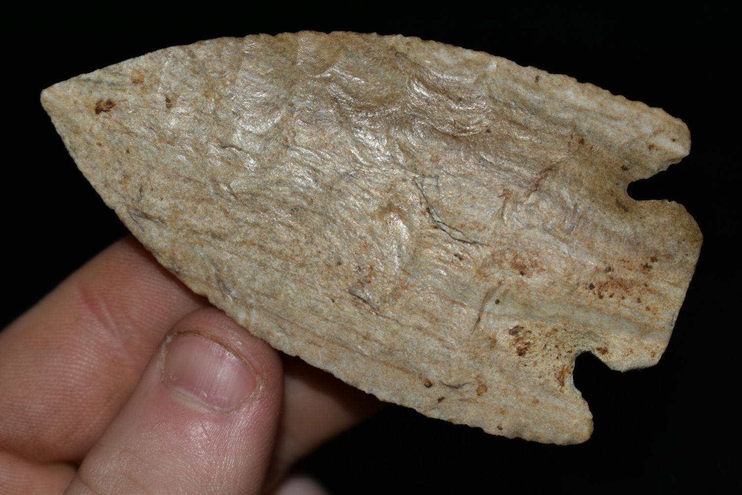 3 3/8″ Hardove found in Monroe Co., Illinois, Rogers COA, made of Jeff City Chert, Ex. Joe Vandiver, Nick Gatses, Authentic Native American Arrowhead