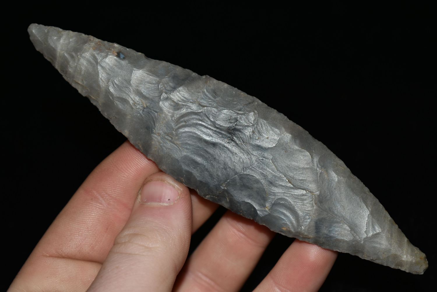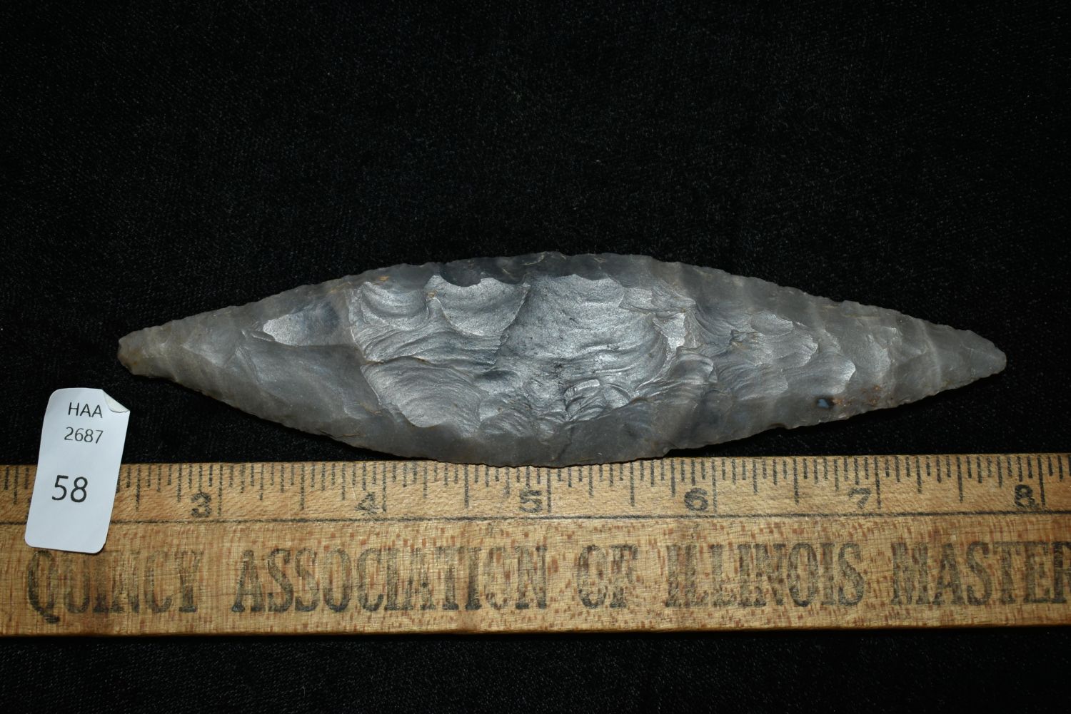 5 1/2″ Adena/Turkey Tail Cache Blade Dickey COA found in Union Co., Illinois, Ex. Nick Gatses Authentic Native American Arrowhead