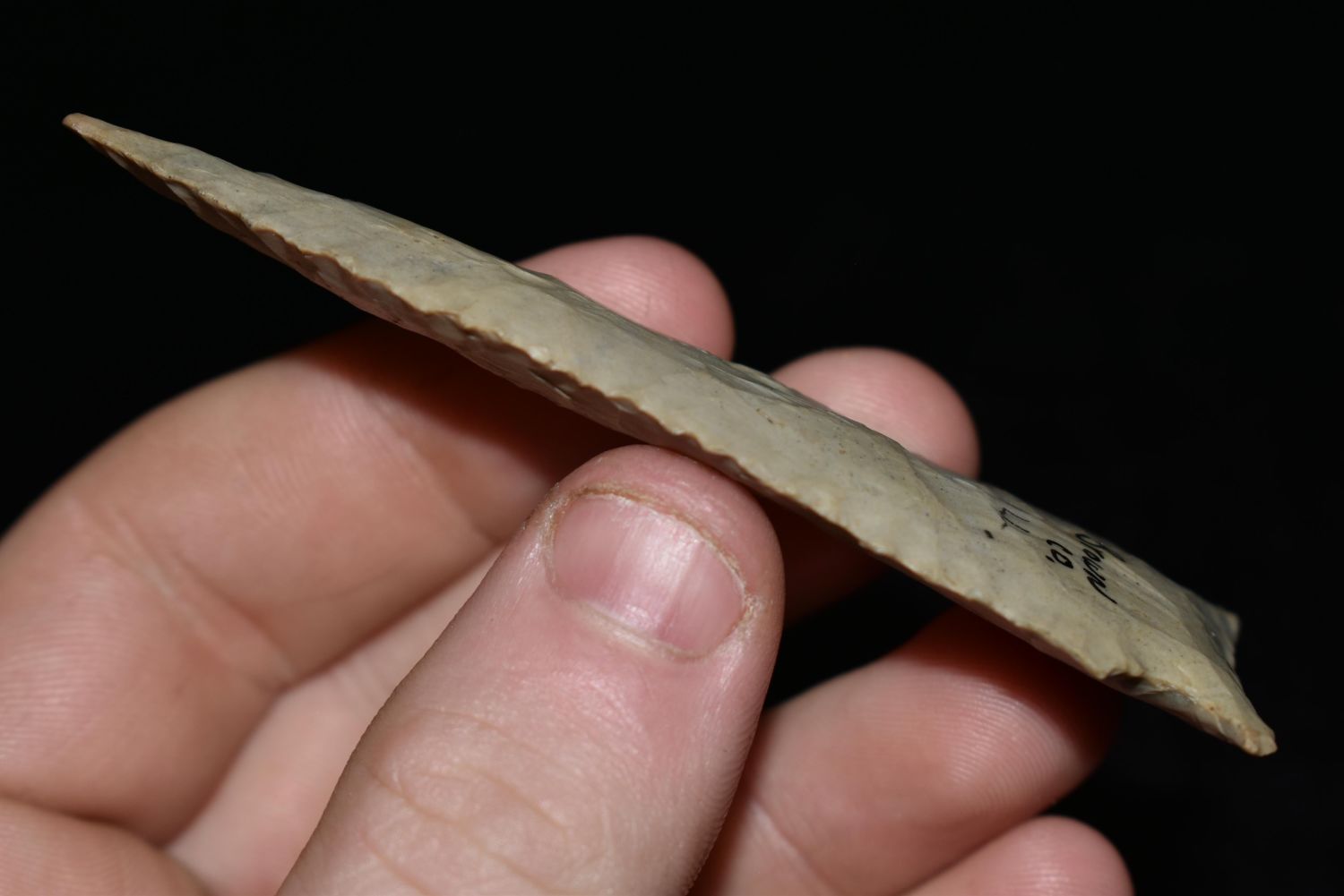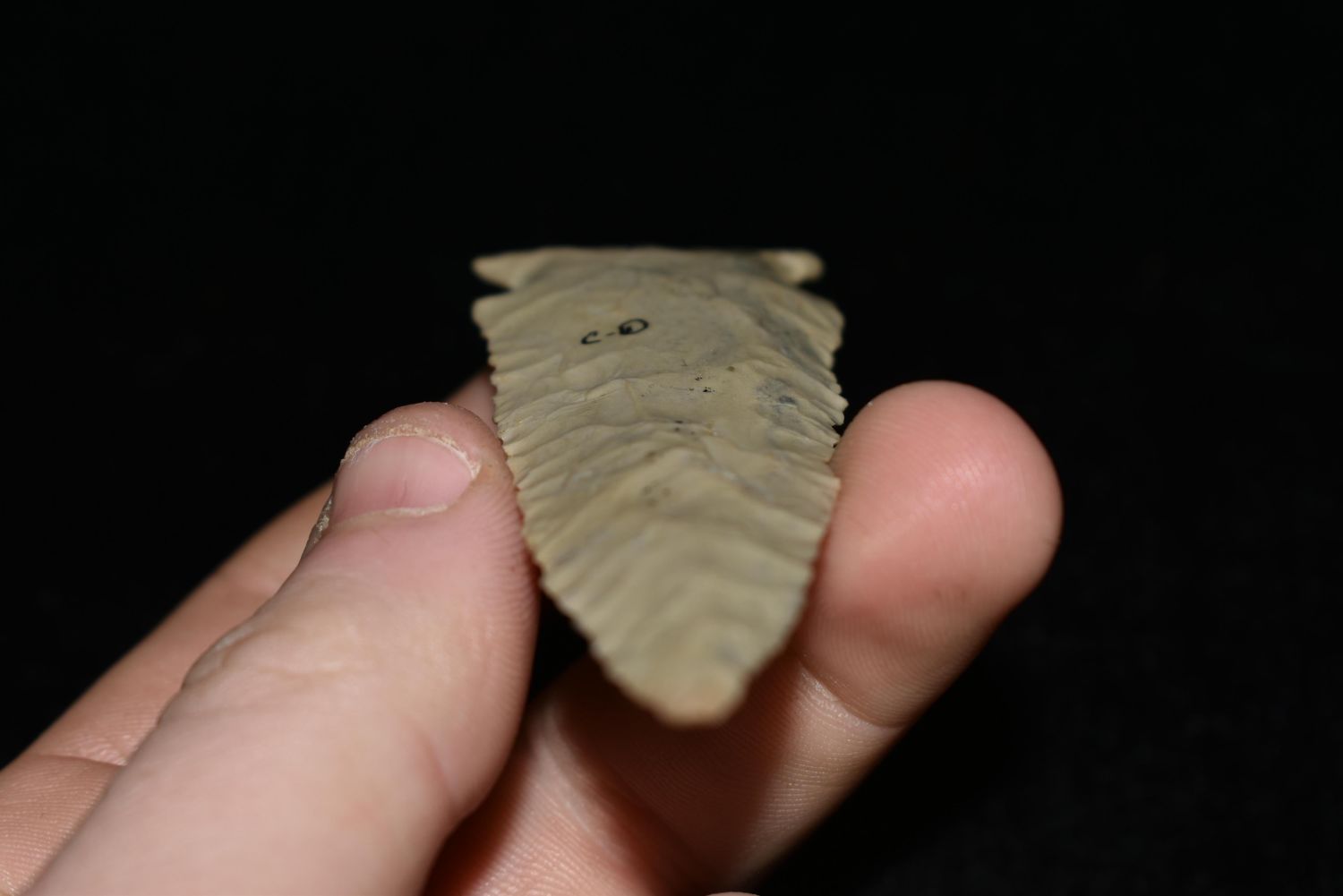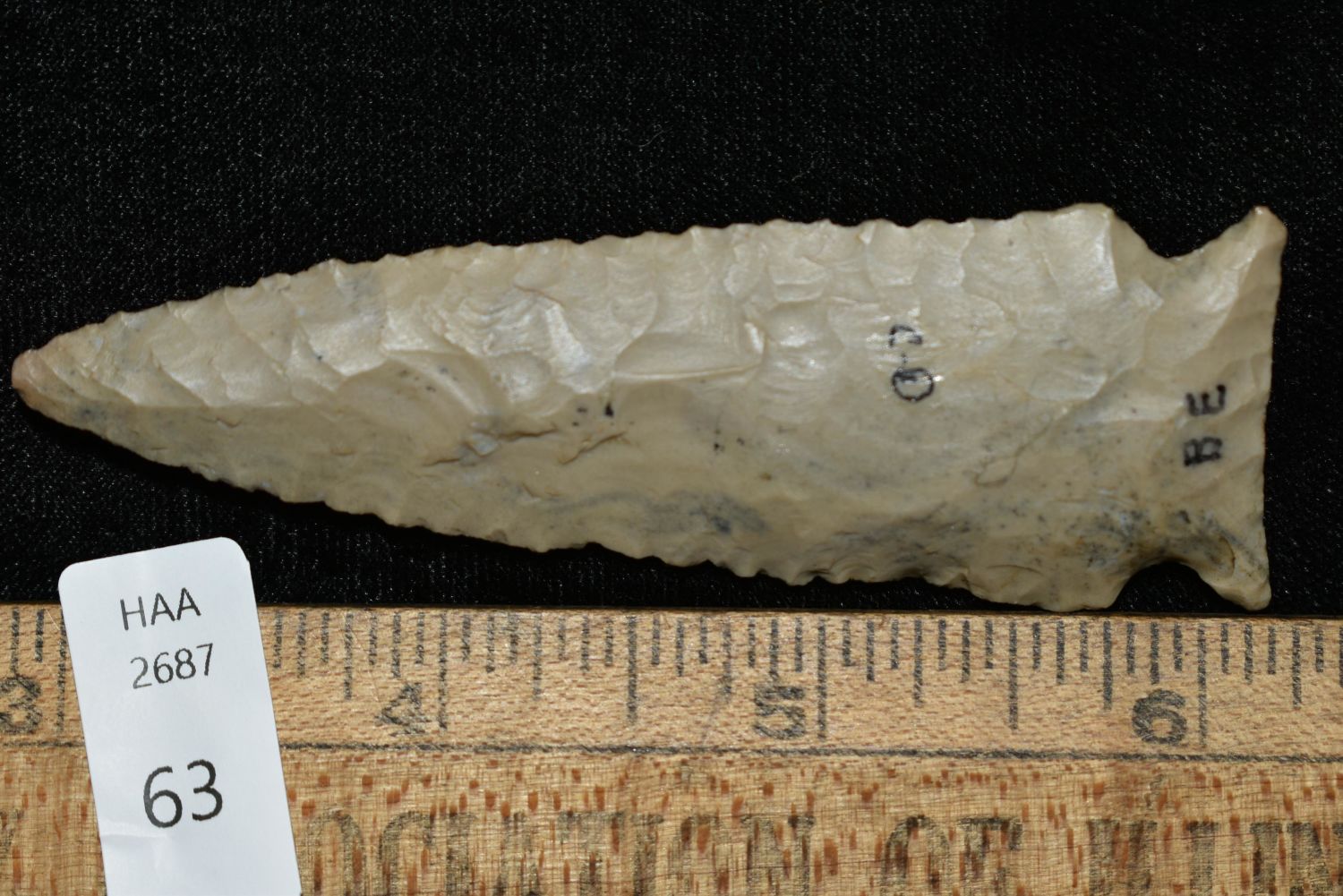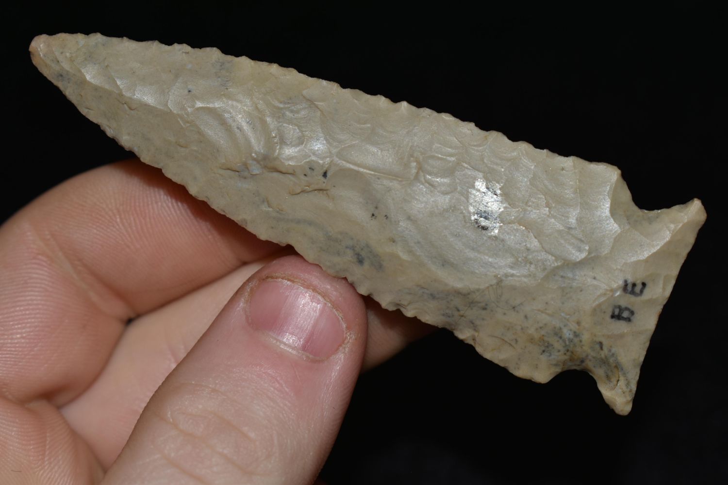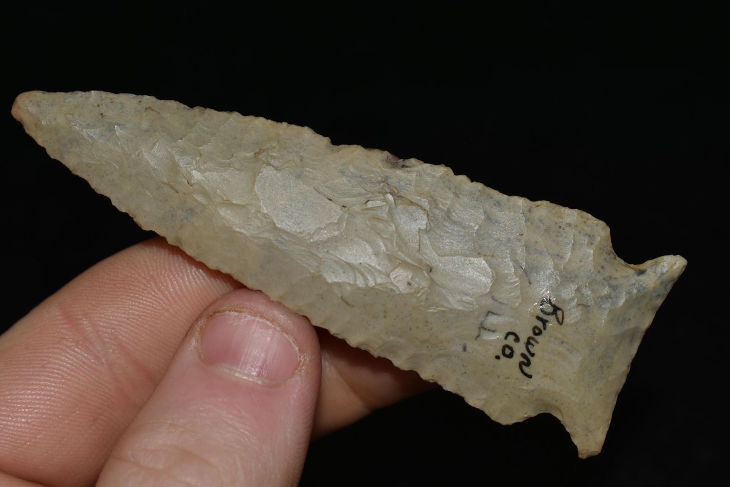 3 3/8″ Cobden Stillwell found in Brown Co., Illinois, Ex. Greg Perino, Bob Perino, Nick Gatses Authentic Native American Arrowhead