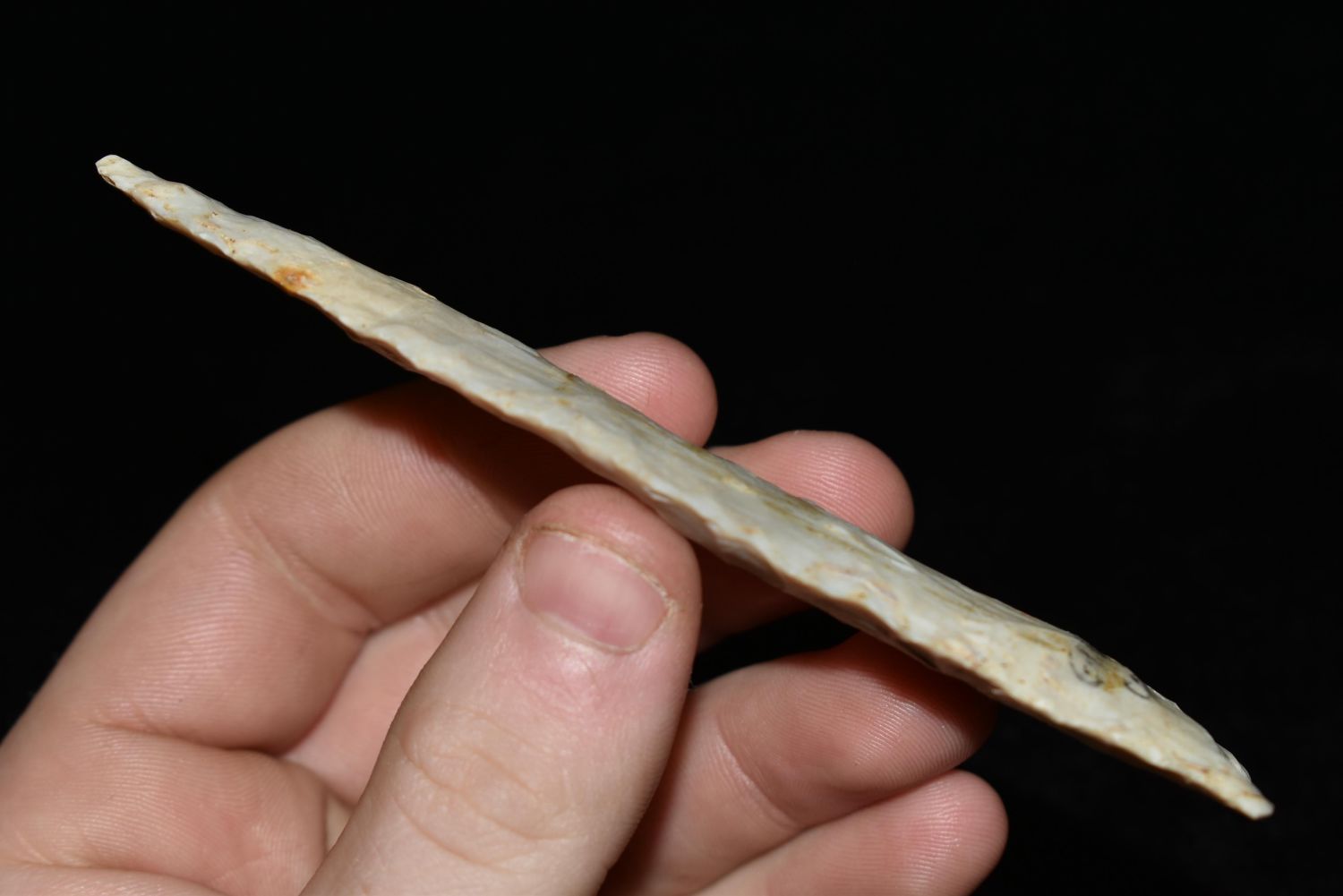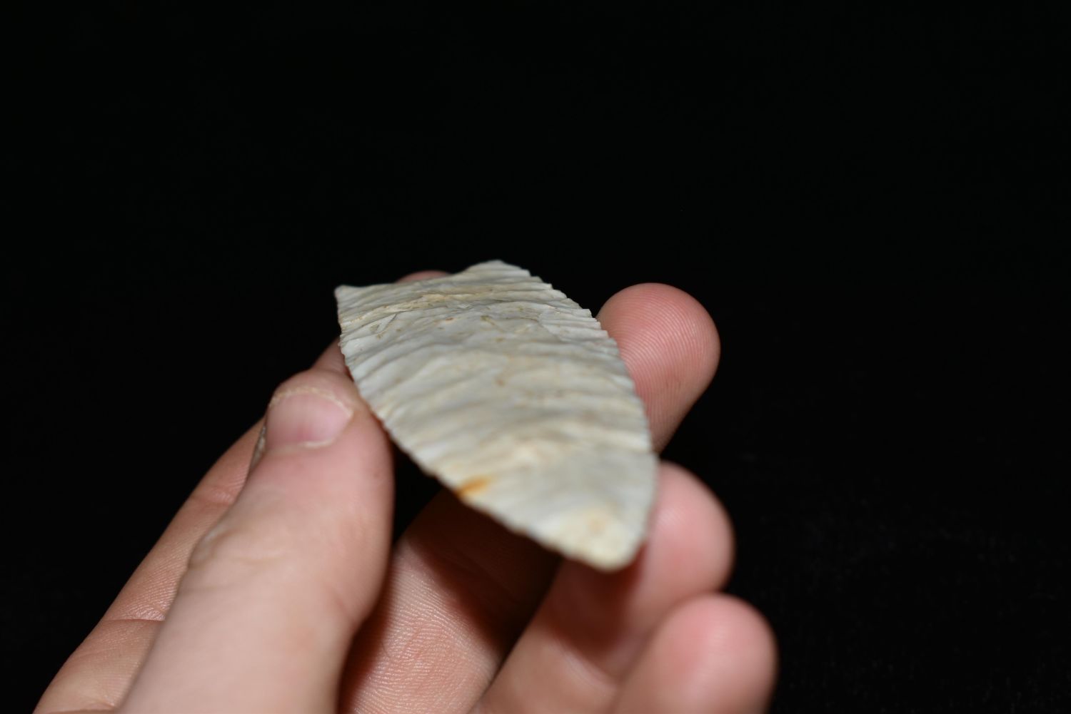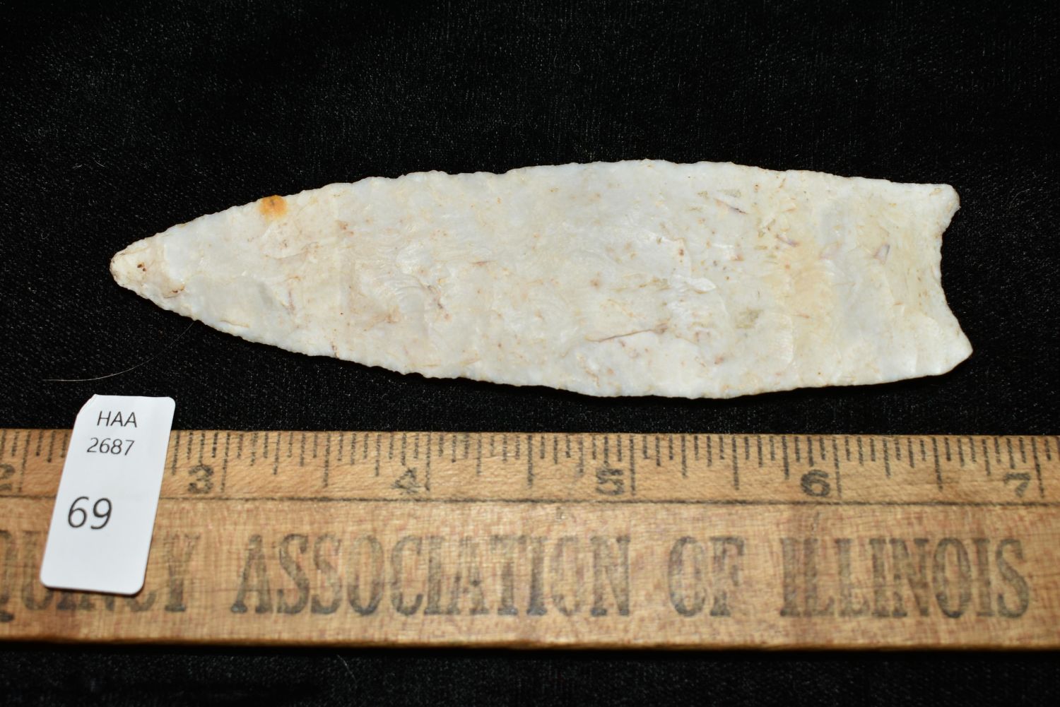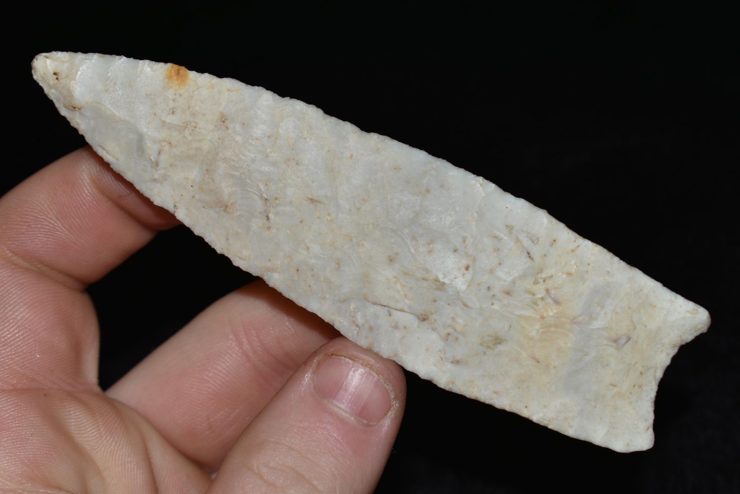 4 3/8″ Dalton made of Crescent Quarry found in Greene Co., Illinois, Ex. Chris Keller, Nick Gatses Authentic Native American Arrowhead