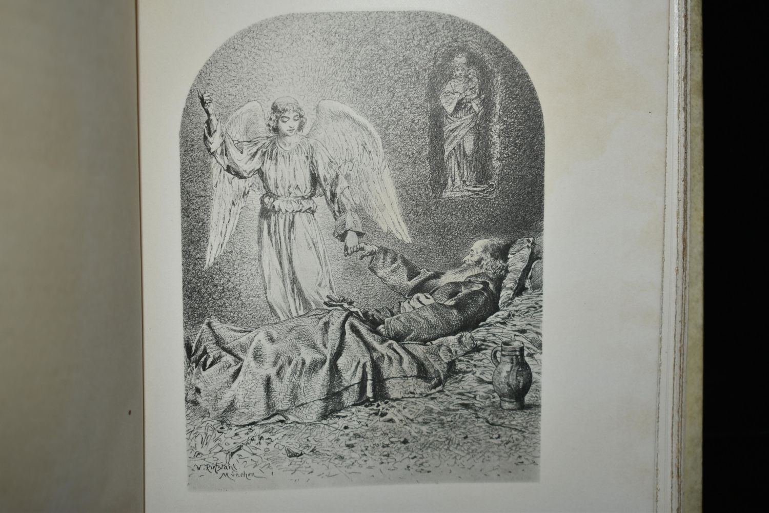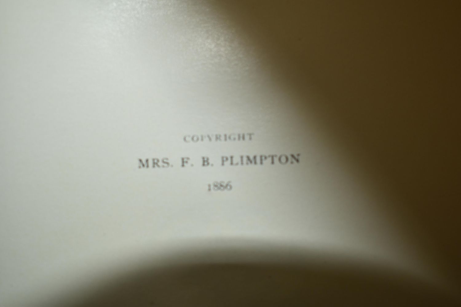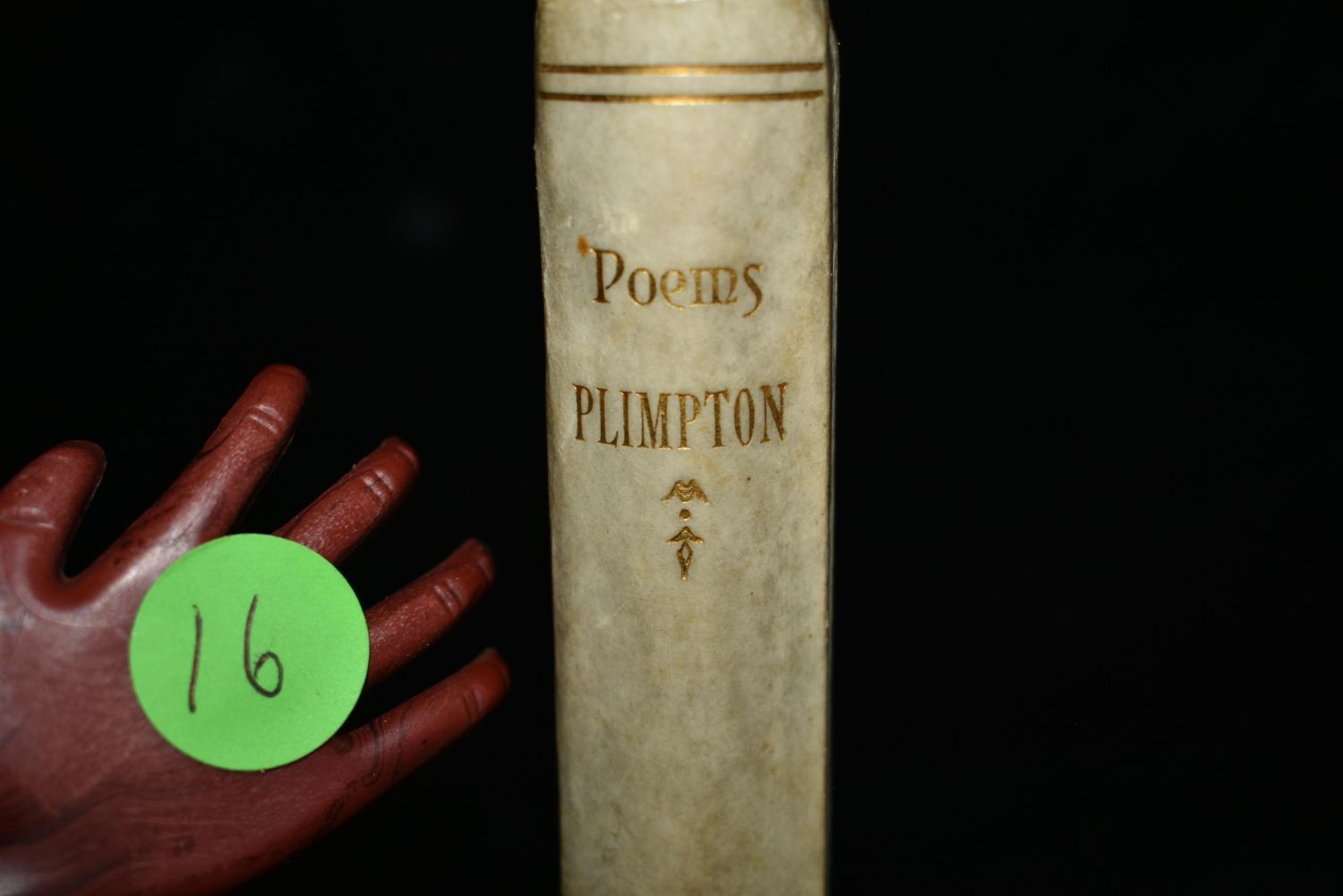 Poems of Florus B. Plimpton by Florus B. Plimpton. Published by Mrs. F. B. Plimpton, Cincinnati, OH (1886). Very Fancy Original publishers hardback with vellum (I think) cover and gold gilt to spine and cover. Tapered boards all around. Age toning to cover otherwise very good condition. Many illustrative pictures throughout the book related to the poetry. 156 pages plus memoir/introduction. 9 5/8" by 6 3/4"