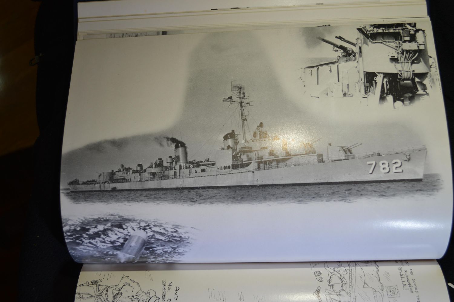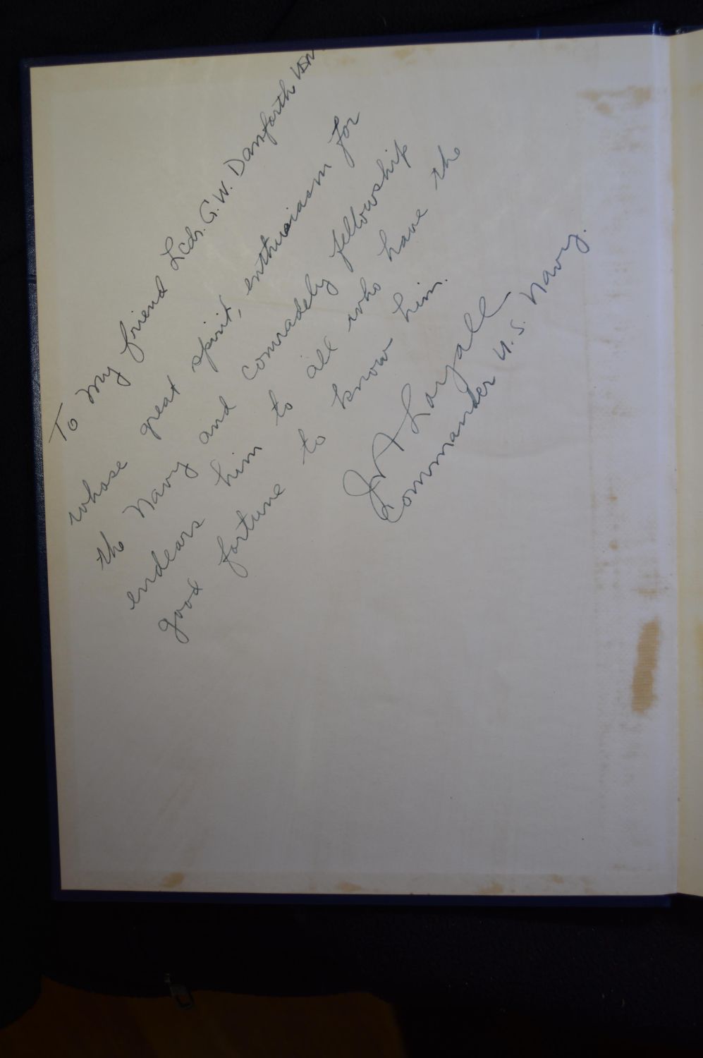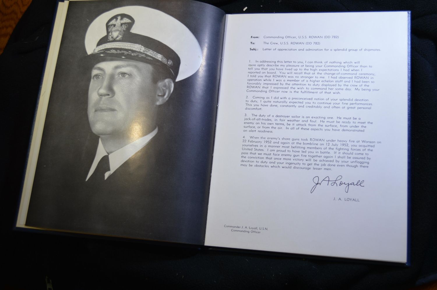 U.S.S. Rowan DD782 Sighned by J. A. Loyall Commander U. S. Navy to Leutenant Commander George W. Danforth. The book is full of photo’s and information of the ship and it’s crew during the Korean and Viet Nam Wars. Book size is 9 1/4" x 12 1/4". The book is in Excellent condition with no visible damage anywhere.