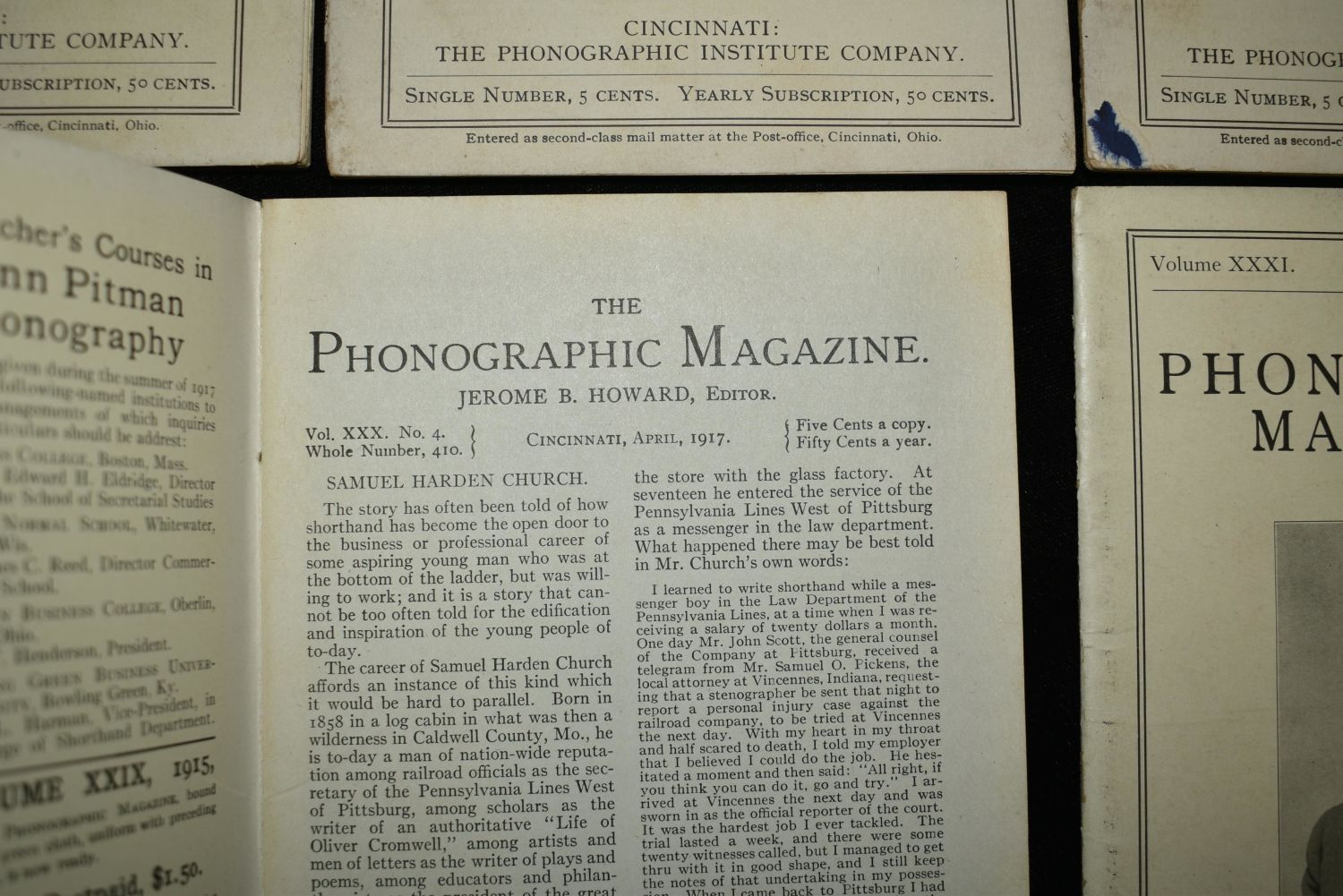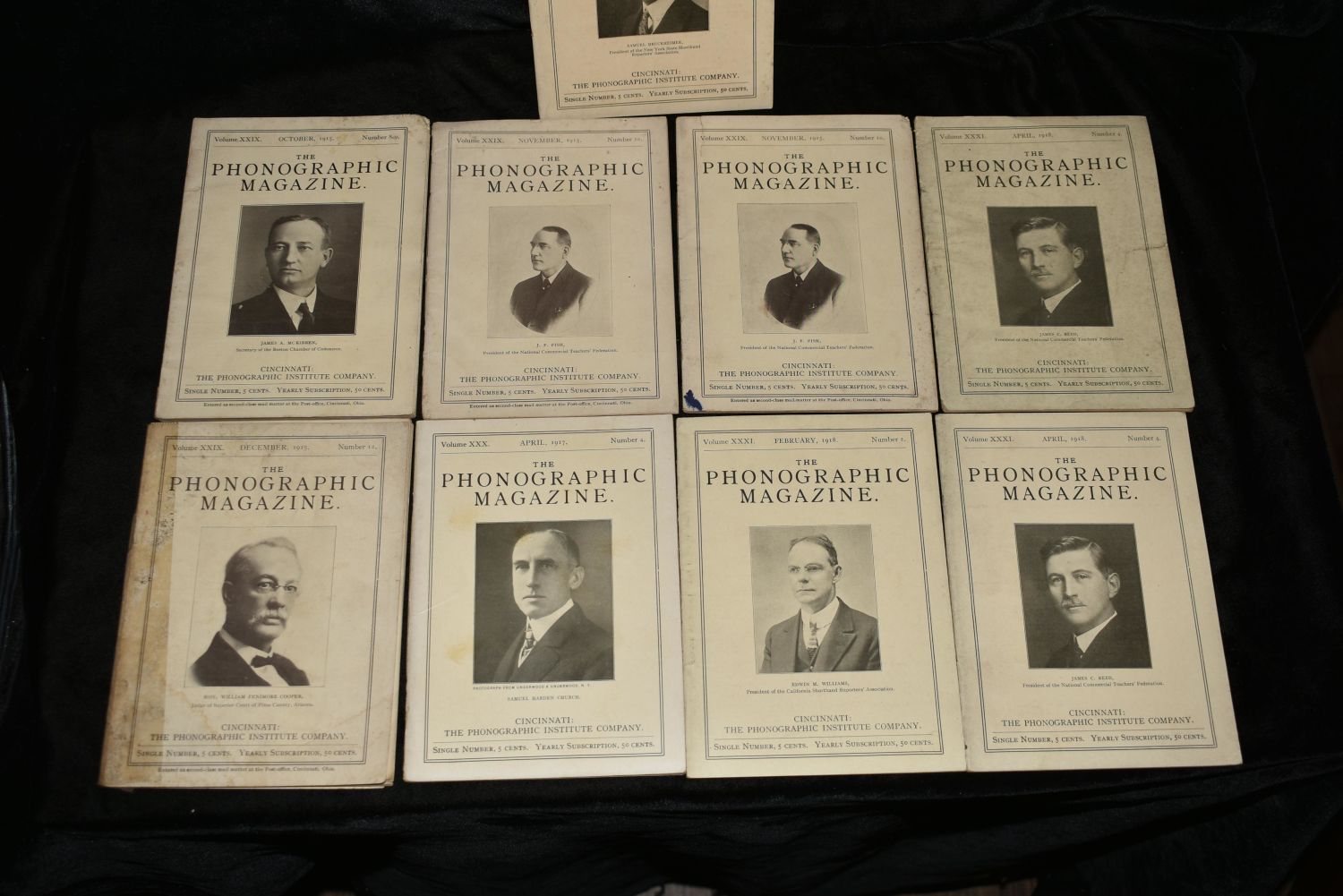 The Phonographic Magazine 1915 to 1918. 9 Different monthly issues by Jerome B. Howard Published in Cincinnati by The Phonographic Institute. Paper backs all in good to very good condition. 4 7/8" by 4 3/4"