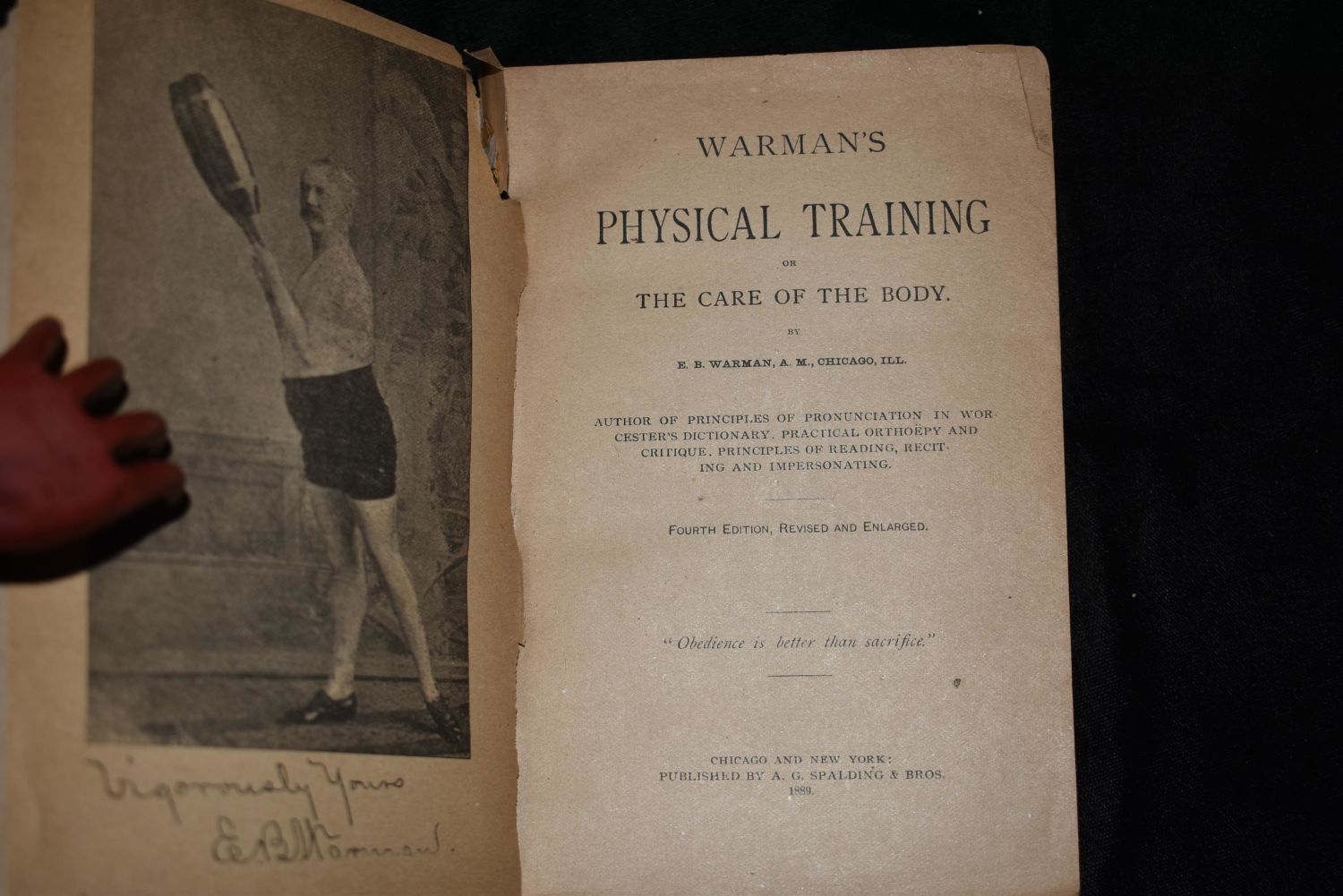 WARMAN’S PHYSICAL TRAINING or THE CARE OF THE BODY by E. B. Warman. Published by Chicago, A. G. Spalding & Bros., 1889. 1st Ed Paperback. No. 16 of Spalding’s Library of Athletic Sports. Cover has a good amount of wear. Corner torn from the top right of cover page. All pages are intact. 190 pgs plus advertisements. 6 3/4" by 4 5/8"