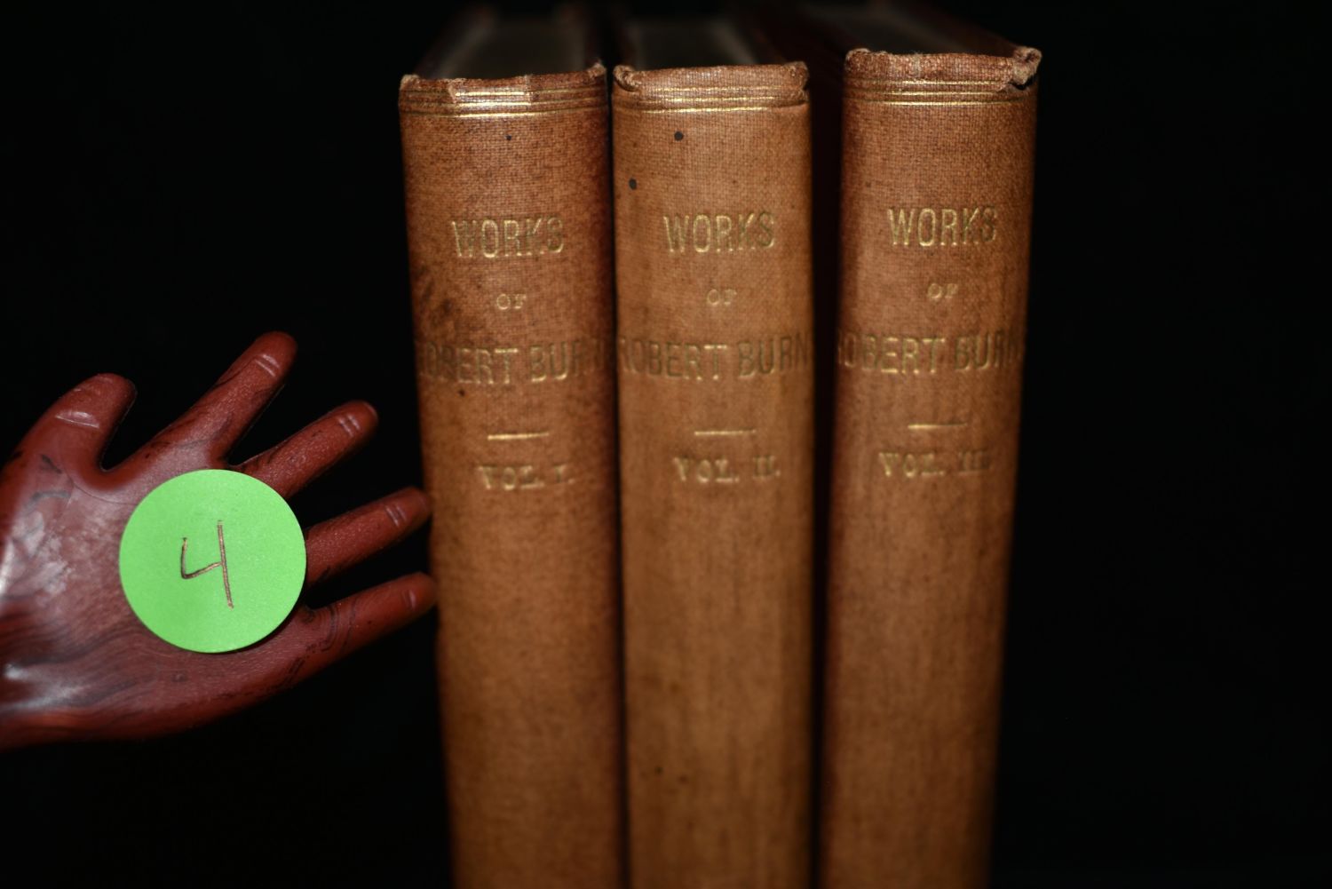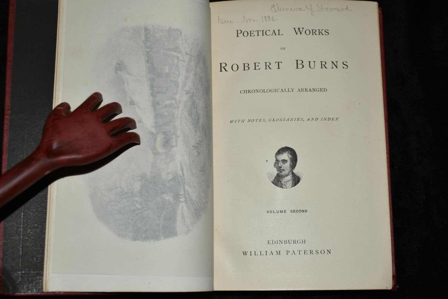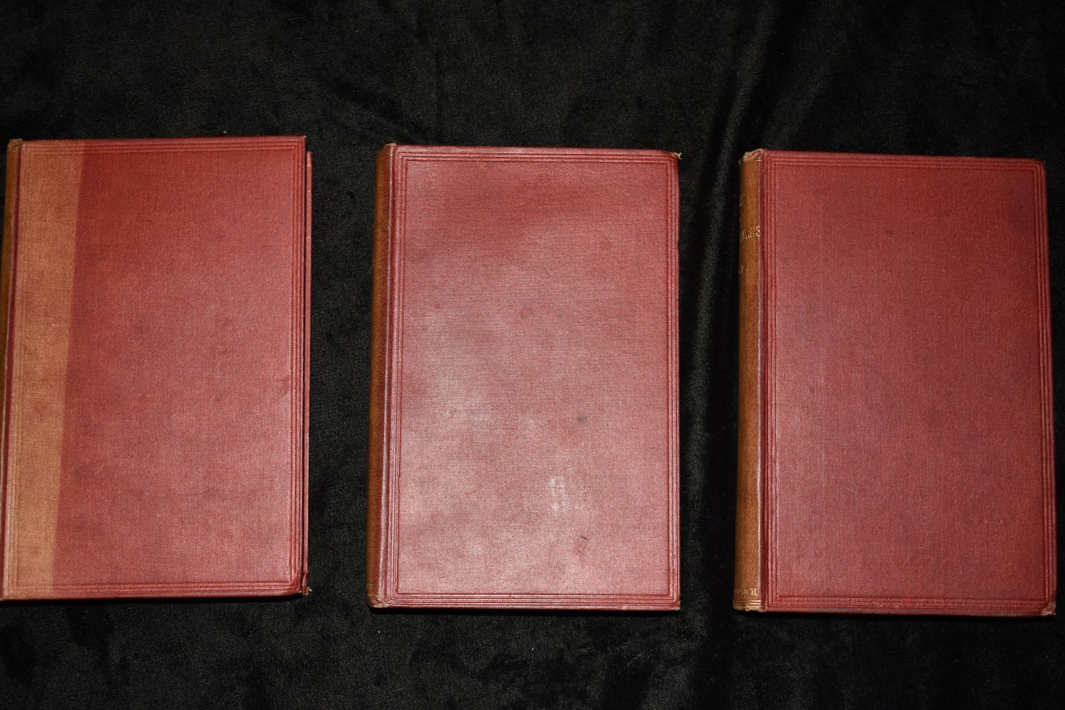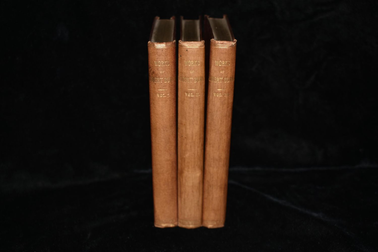 Poetical works of Robert Burns : Chronologically arranged with notes, glossaries, and index by Robert Burns. Published by Edinburgh : William Paterson 1880’s (Publisher didn’t put a date on it). 3 Volume Set. Publishers original red cloth hardback with gold print. Gold Edging to top of pages. Fading to spines otherwise very good condition. 278 pgs, 271 pgs and 267 pgs.