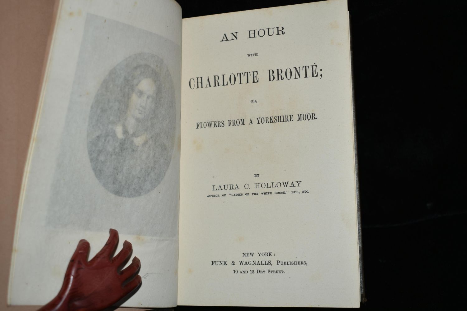 An Hour With Charlotte Bronte; Or Flowers From a Yorkshire Moor by Laura C. Holloway. Published by Funk and Wagnalls (1883). Excellent condition. Publishers original embossed brown cloth hardback with gold gilt to cover and spine. 144 pgs plus adds. 7 5/8" by 5 1/8"