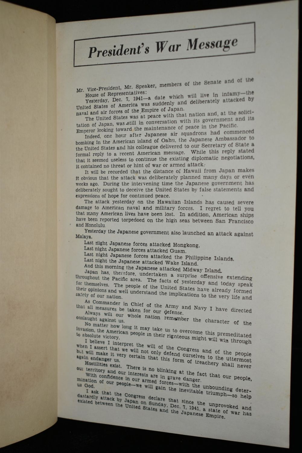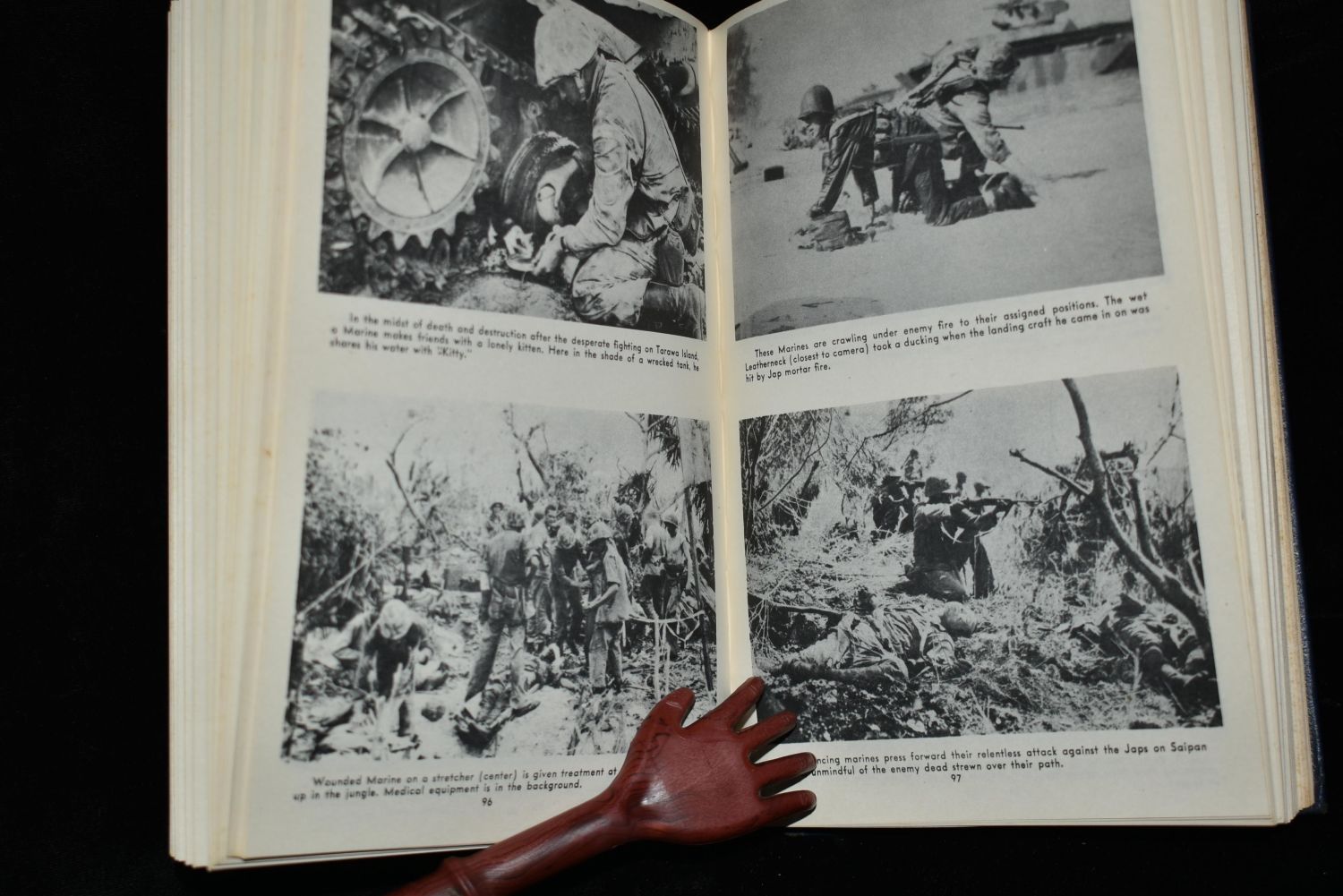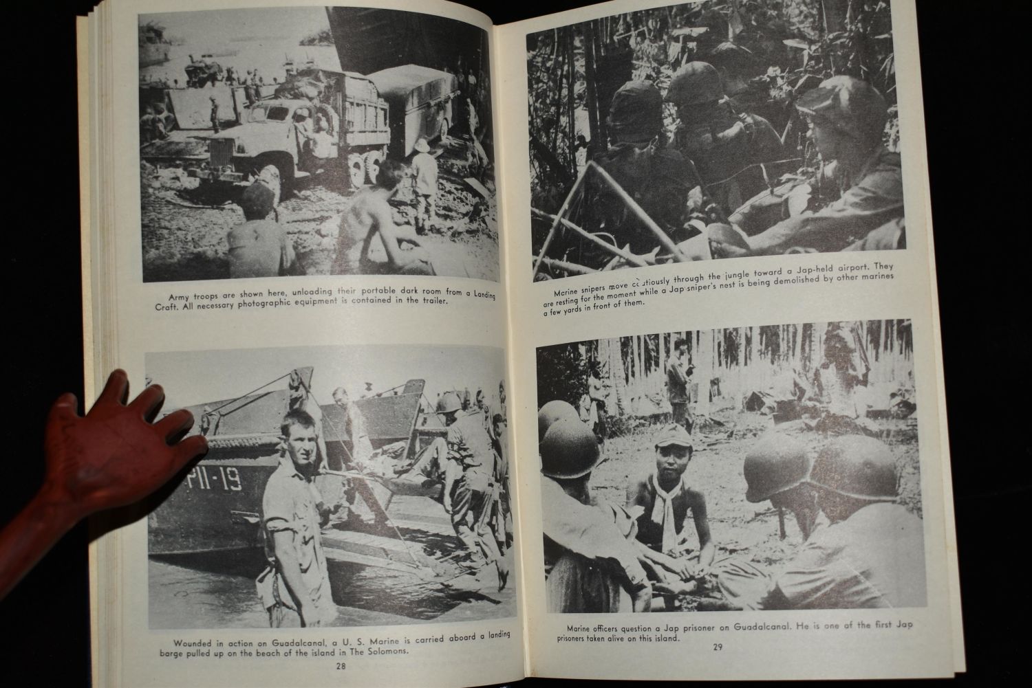 1945 EYES OF THE WAR: A Photographic Report of World War II. 612 Authentic Battle Photos from Dec. 7, 1941 to V-E day, May 8, 1945. America’s Fighting Forces on All War Fronts. Edited by Nat. Hyman. Published by Telpic Sales January 1945. Excellent condition. Loaded with ww 2 photo’s front to back. Original publishers blue cloth hardback with gold print. 313 pgs 8 1/2" by 5 1/2"