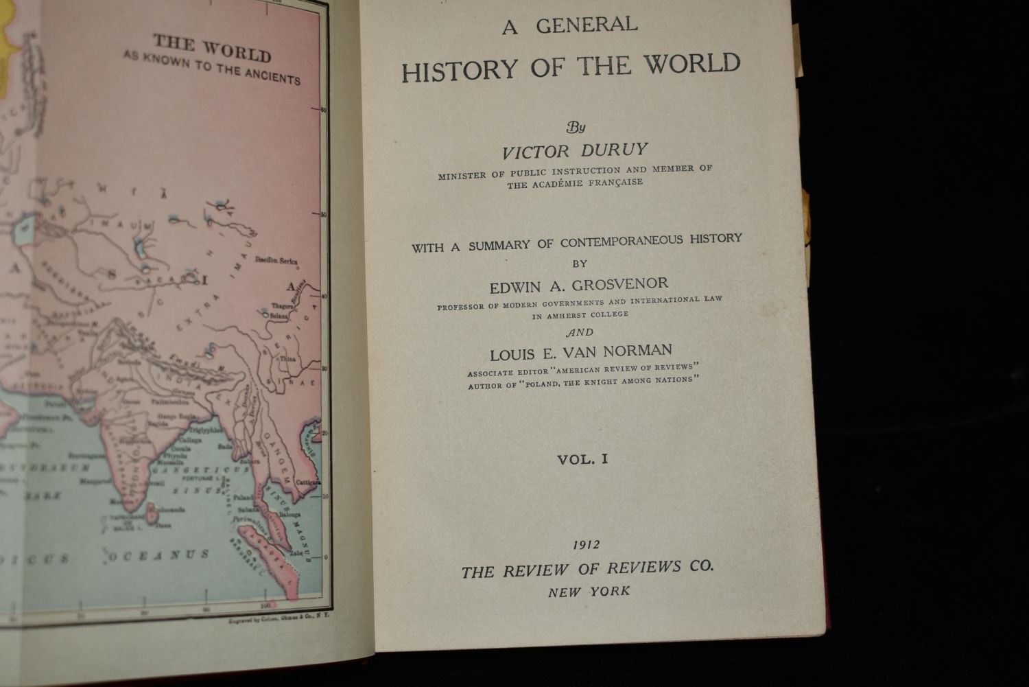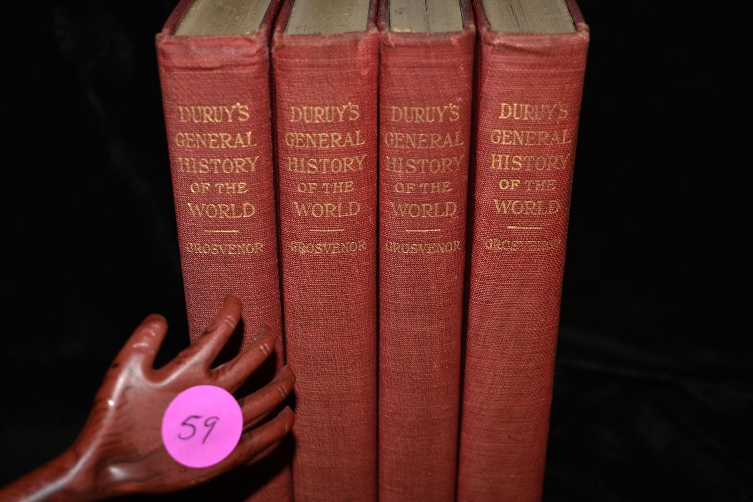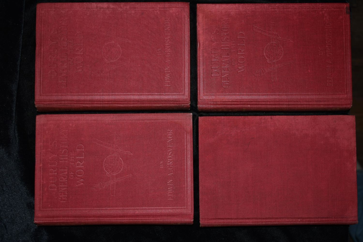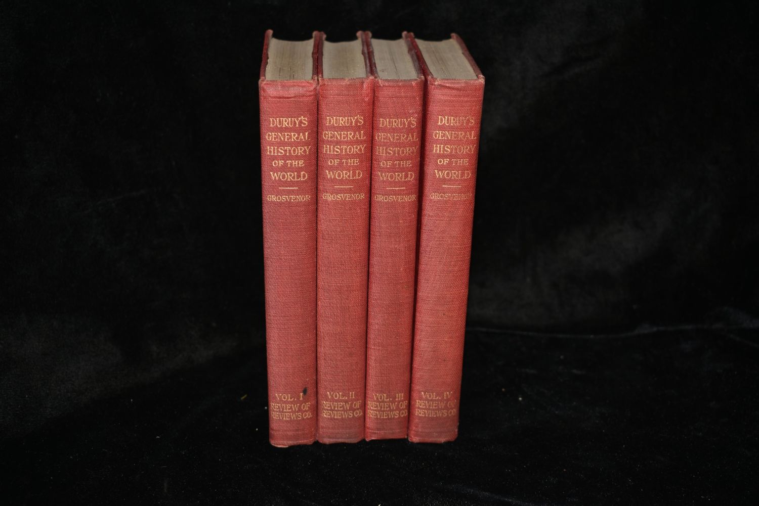 General History Of The World, A 4 Volume Set by Victor Duruy. Published by The Review of Reviews Co., New York 1912. Publishers original embossed red cloth hardbacks with gold print to spines. Overall very good condition. A little shelf wear to covers. Each book has fold out pictures and maps etc. 885 pgs total. 7" by 5"