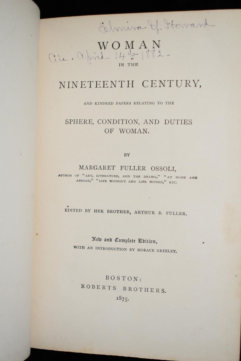 Woman in the Nineteenth Century, and Kindred Papers Relating to the Sphere, Condition and Duties of Woman. Published by Roberts Brothers 1875. Very Good + Condition. Publishers original embossed cloth hardback with gold gilt to spine. 420 pgs 7 5/8" by 5 3/8"