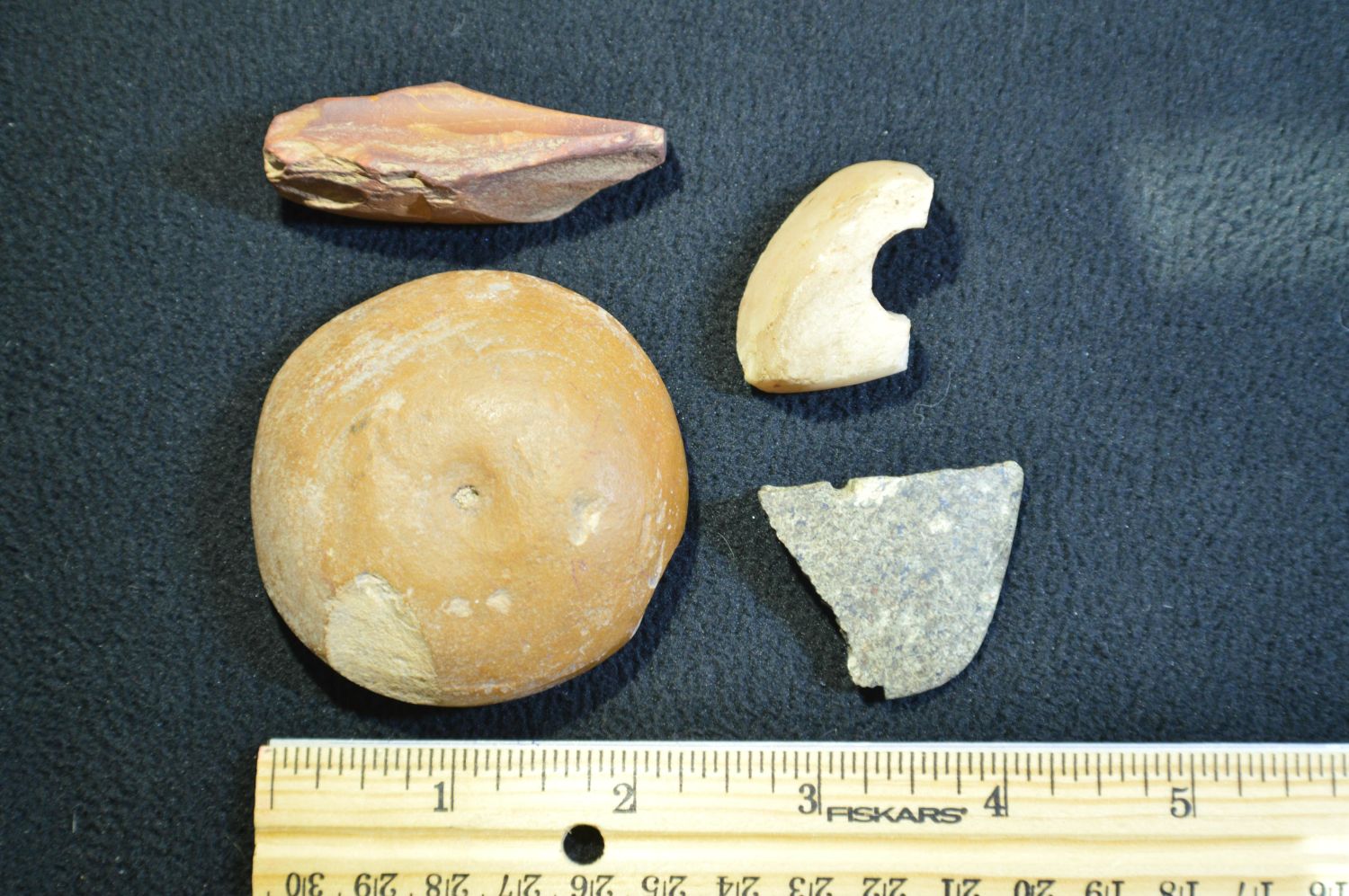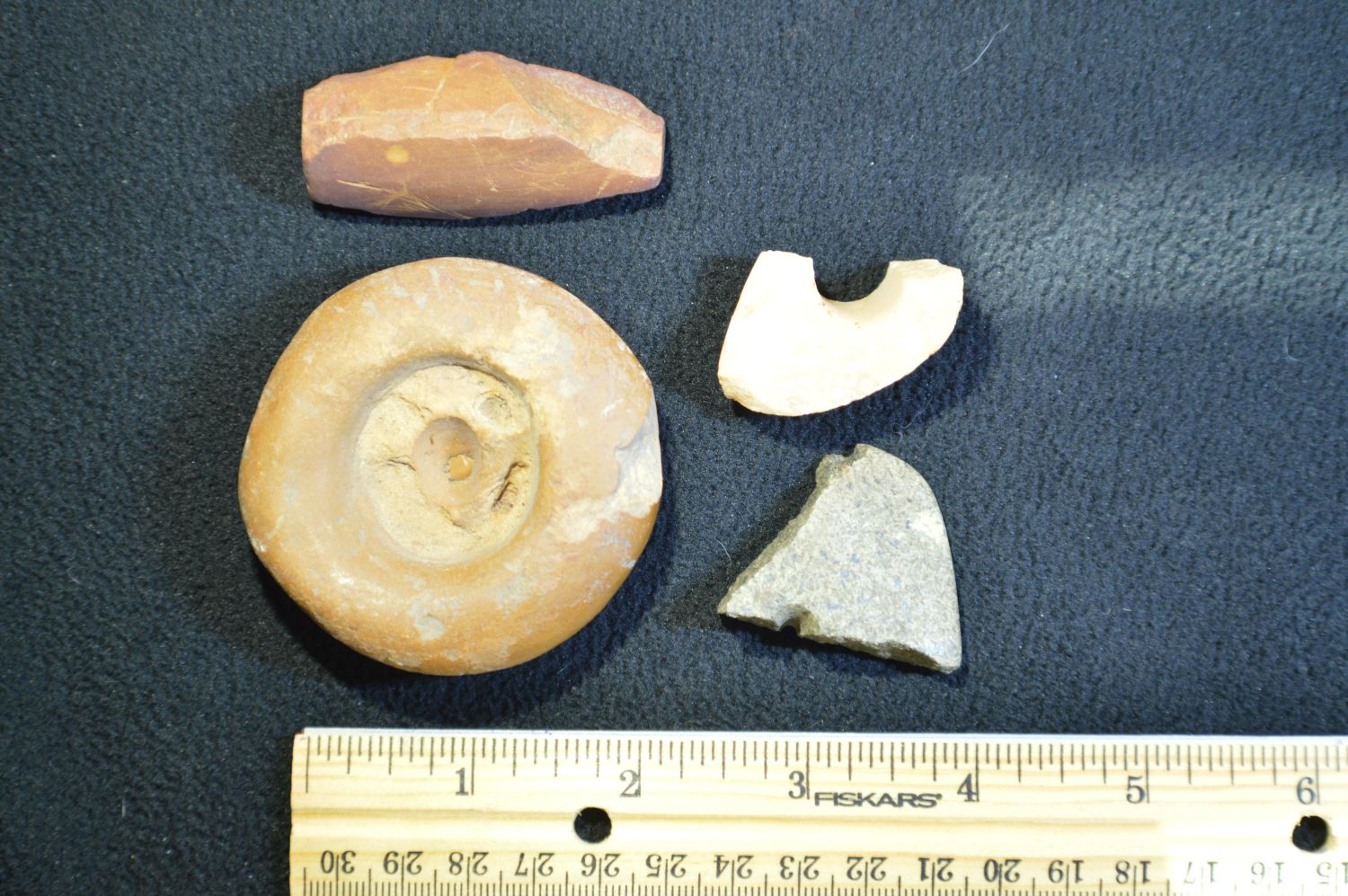 3 Damaged Bannerstones and a unfinished Cone Found in Pulaski Co. IL by Tom and Charles Hite. Authentic Native American Arrowhead Artifact.