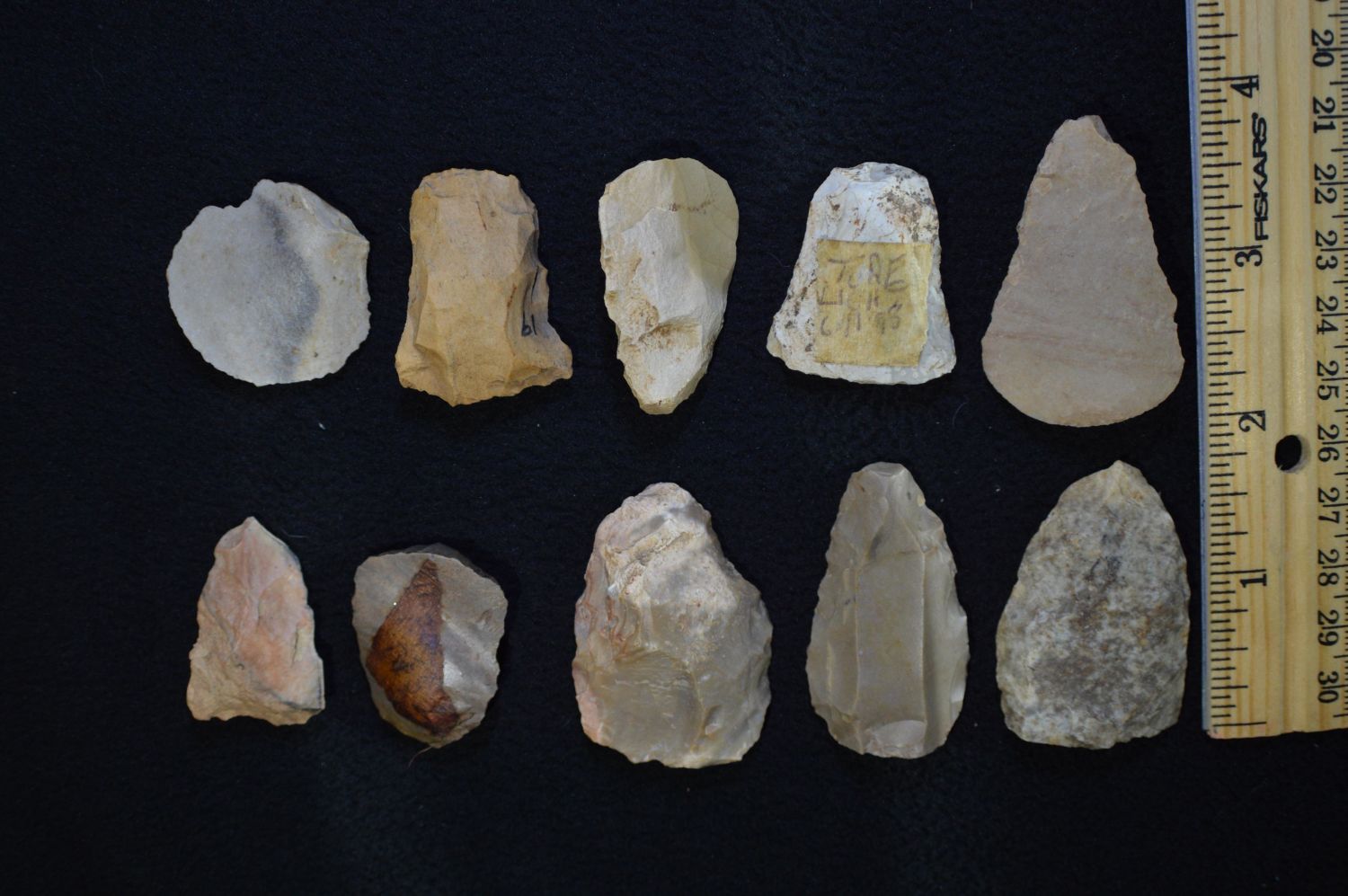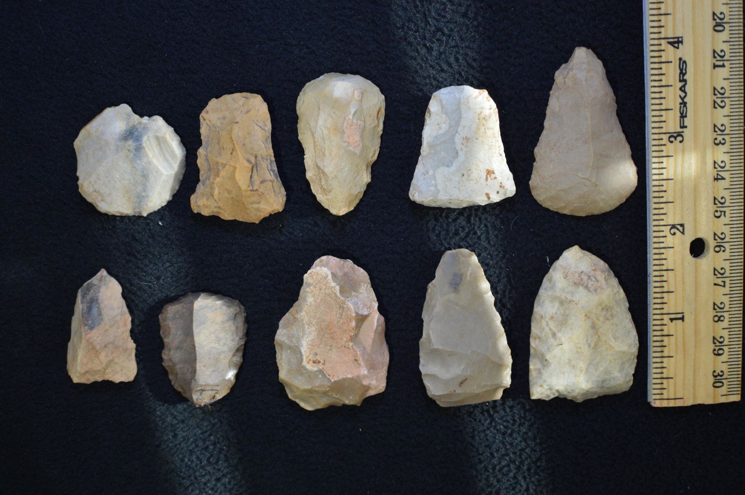 10 Thumb Scrapers Longest is 1 7/8 " Found in Pulaski Co. IL by Tom and Charles Hite. Authentic Native American Arrowhead Artifact.