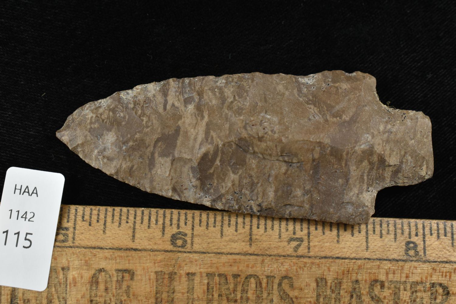 3 1/4" MULBERRY CREEK FOUND IN BENTON/HUMPHREYS COUNTY TENNESSEE, EX SIMMS COLLECTION, NATIVE AMERICAN INDIAN ARROWHEAD, ARTIFACT
