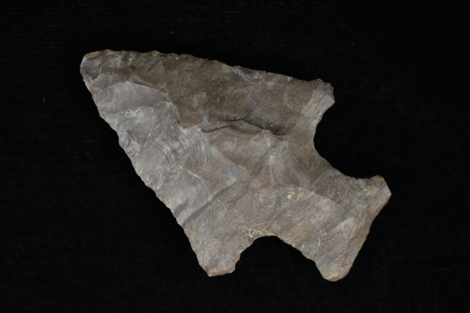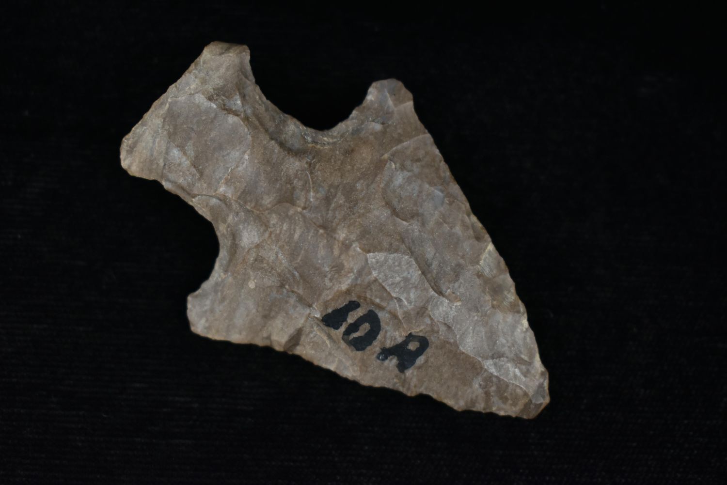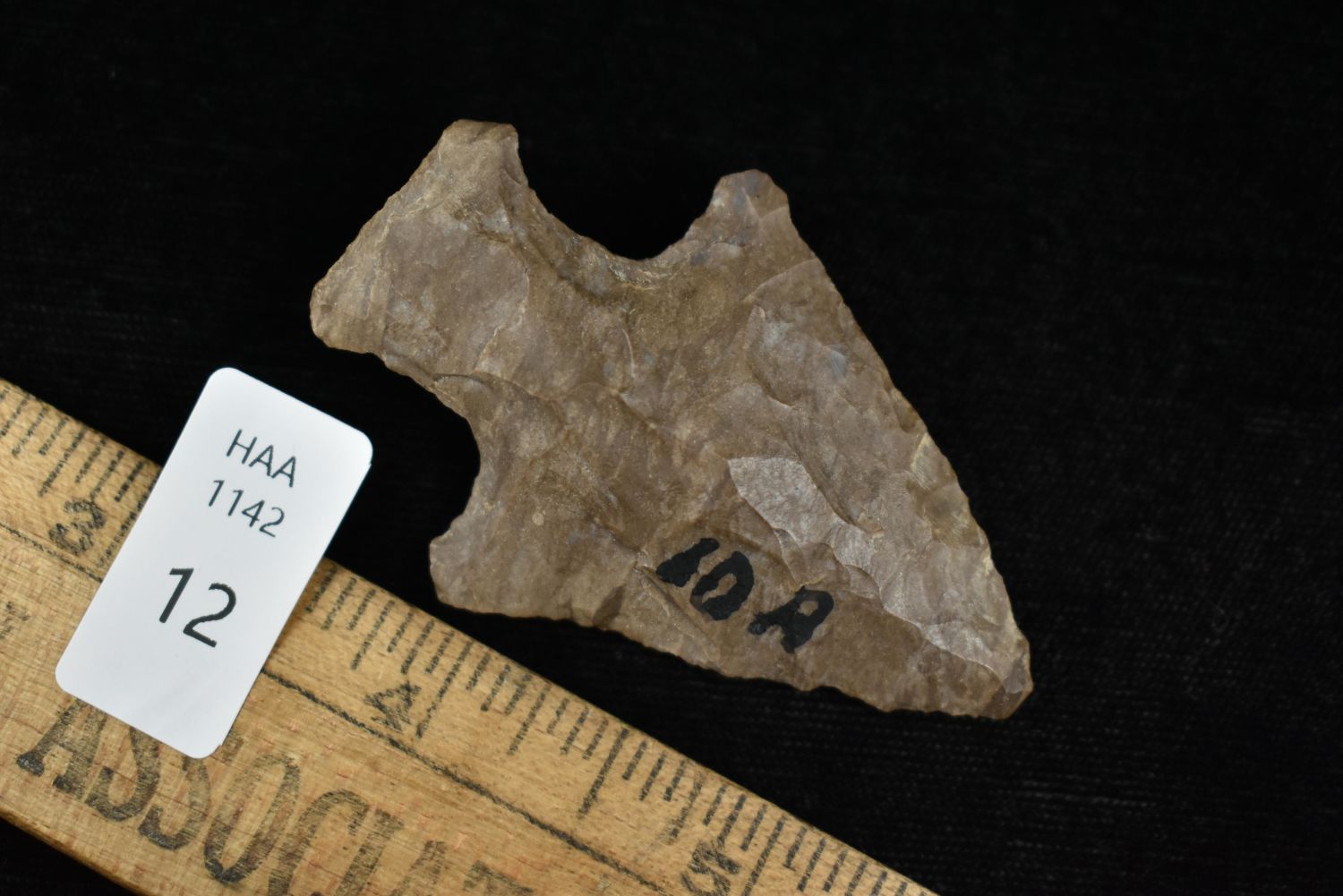2 5/16" MOTLEY FOUND IN BENTON/HUMPHREYS COUNTY TENNESSEE, EX SIMMS COLLECTION, NATIVE AMERICAN INDIAN ARROWHEAD, ARTIFACT
