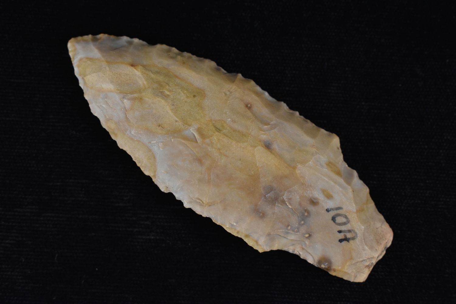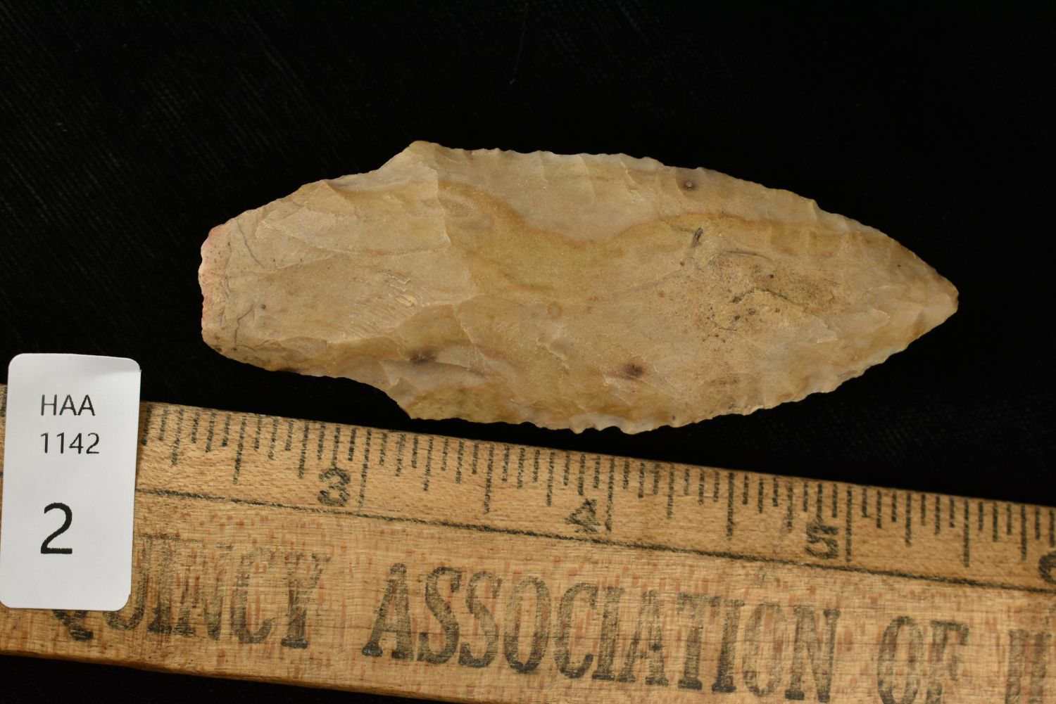3 1/8" COLORFUL ADENA FOUND IN BENTON/HUMPHREYS COUNTY TENNESSEE, EX SIMMS COLLECTION, NATIVE AMERICAN INDIAN ARROWHEAD, ARTIFACT