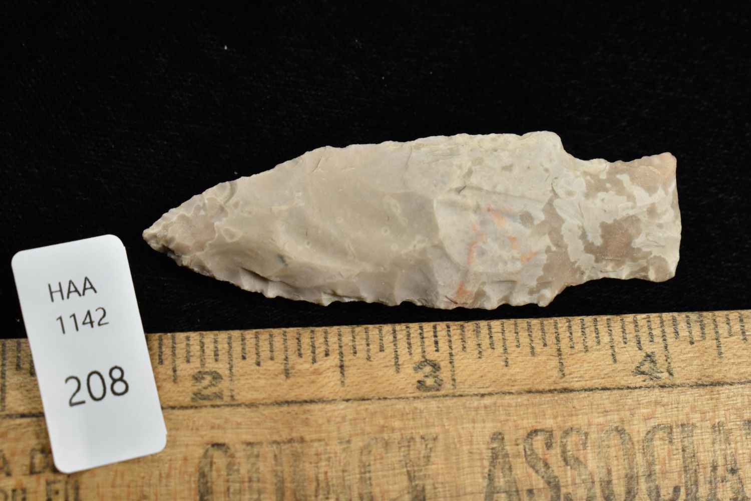 2 1/2" COLORFUL FLINT CREEK FOUND IN BENTON/HUMPHREYS COUNTY TENNESSEE, EX SIMMS COLLECTION, NATIVE AMERICAN INDIAN ARROWHEAD, ARTIFACT