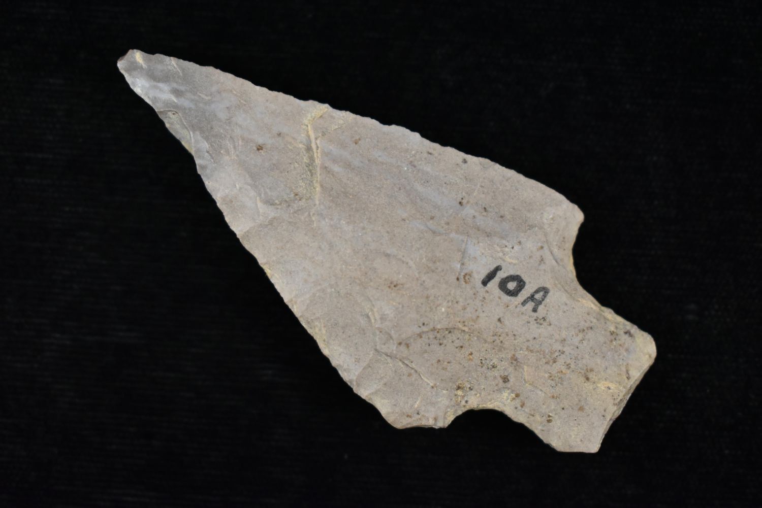 2 5/8" CATACO WRIGHT FOUND IN BENTON/HUMPHREYS COUNTY TENNESSEE, EX SIMMS COLLECTION, NATIVE AMERICAN INDIAN ARROWHEAD, ARTIFACT