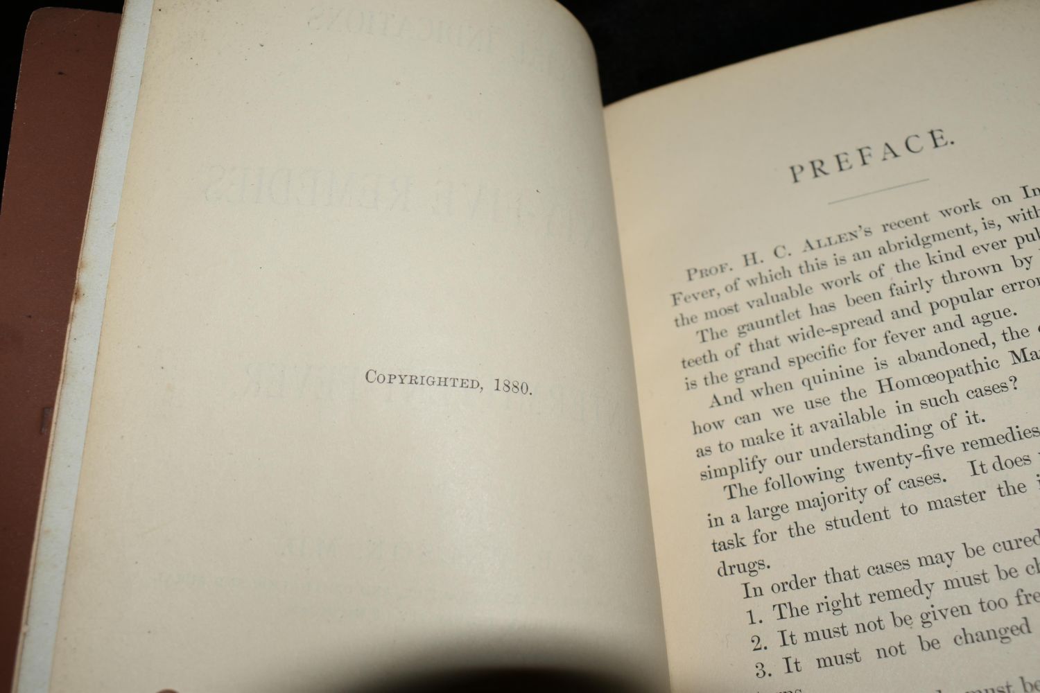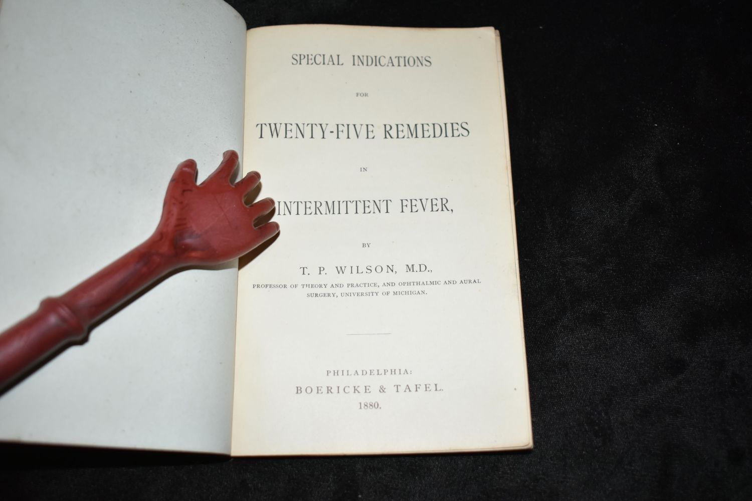Special Indications For Twenty-Five Remedies In Intermittent Fever (Paperback) by Thomas Pardon Wilson. Published by Boericke and Tafel, Philadelphia 1880. 1st Edition. Very Good condition. Has an ink mark on the cover and a little wear to corners. 53 pgs. 6 7/8" by 4 3/8"