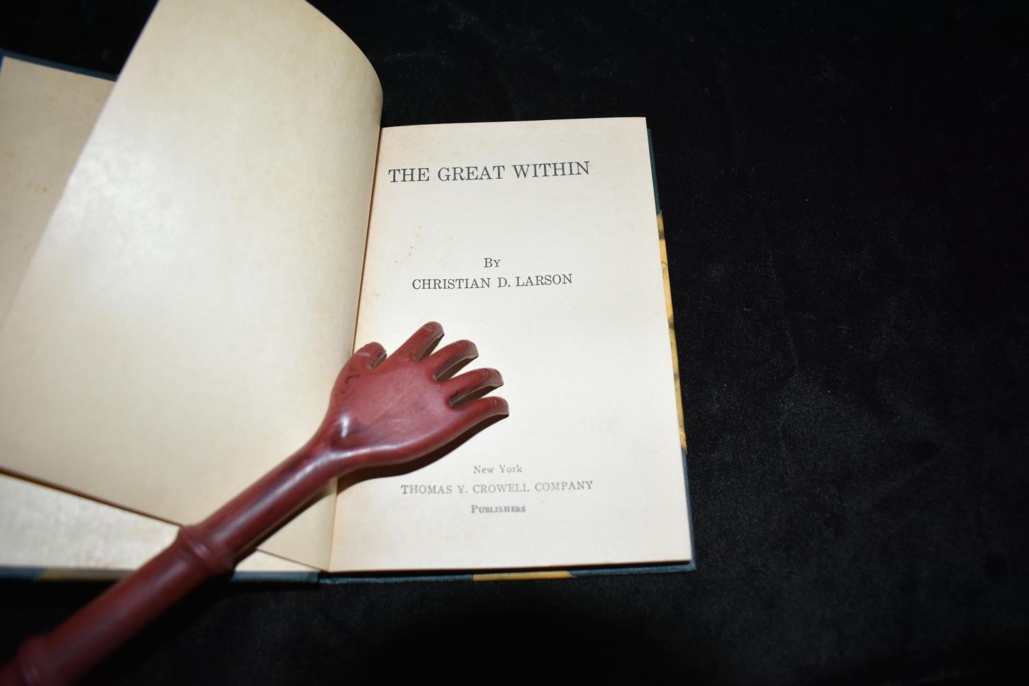 The Great Within by Christian D. Larson. Published by New York, Thomas Y. Crowell Company 1907. 1st American Edition. Near Excellent condition. Age toning inside covers. Publishers original blue cloth hardback with decorative boards and gilt to cover and spine. 102 pgs. 6" by 4 3/8"
