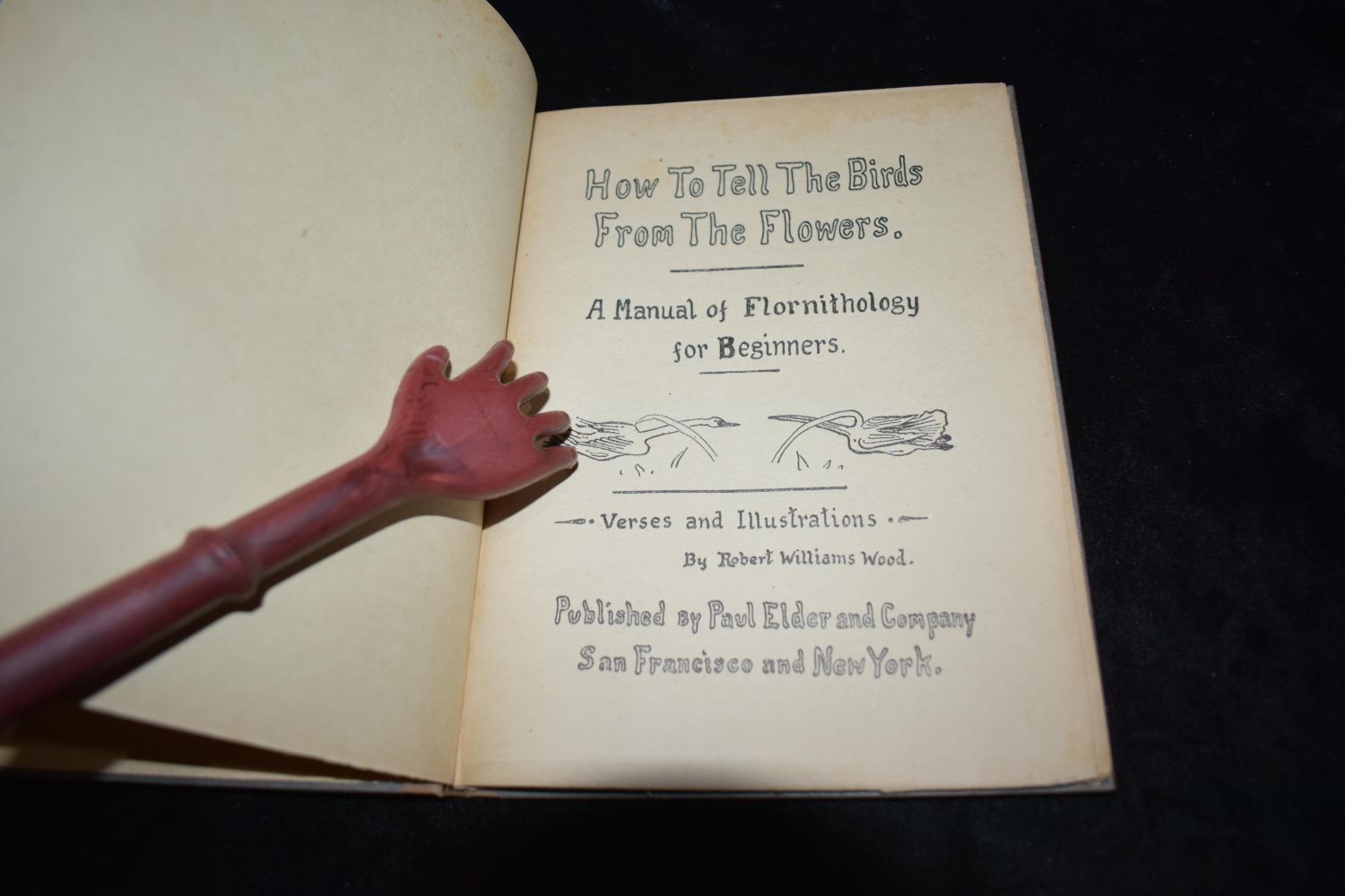 How To Tell The Birds From The Flowers, A Manual of Flornithology For Beginners. Nature Series No.23. by Robert Williams Wood. Published by Paul Elder & Company (1907). 1st Edition. Very Good condition. Publishers original grey cloth hardback with black print. 28 pgs 7 5/8" by 5 7/8"
