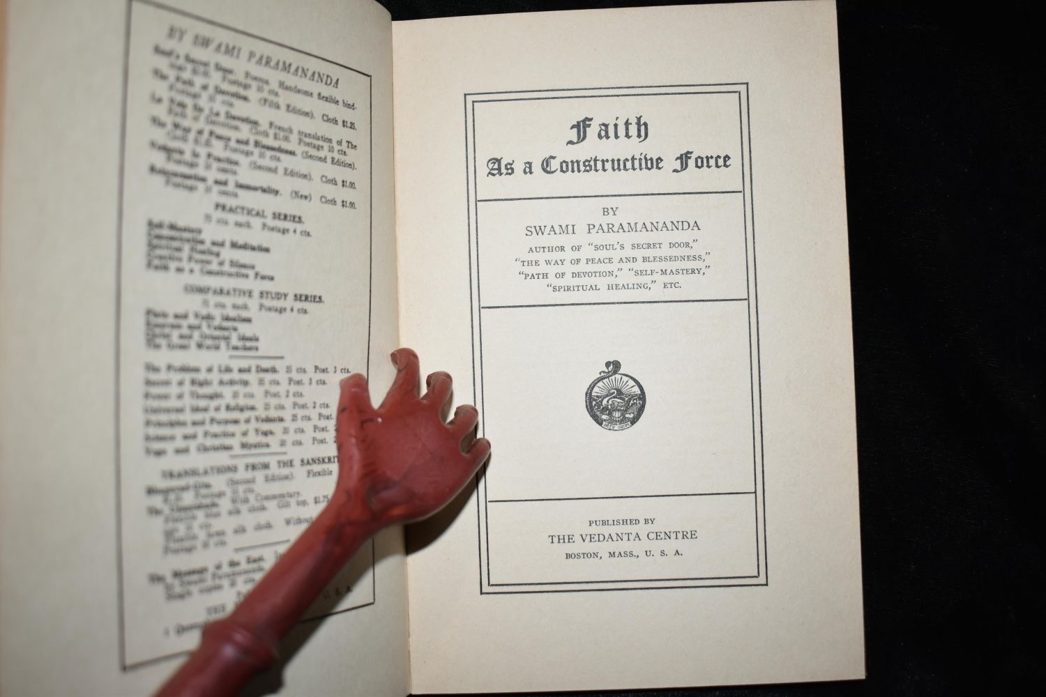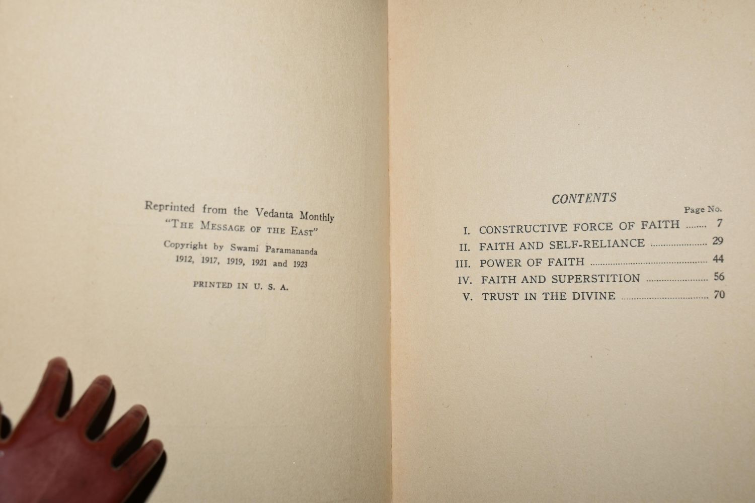 Faith as a Constructive Force by Swami Paramananda. Published by The Vedanta Centre, Boston (1923). Excellent condition. Publishers original grey cloth hardback with brown print. 80 pgs 7 3/8" by 5"