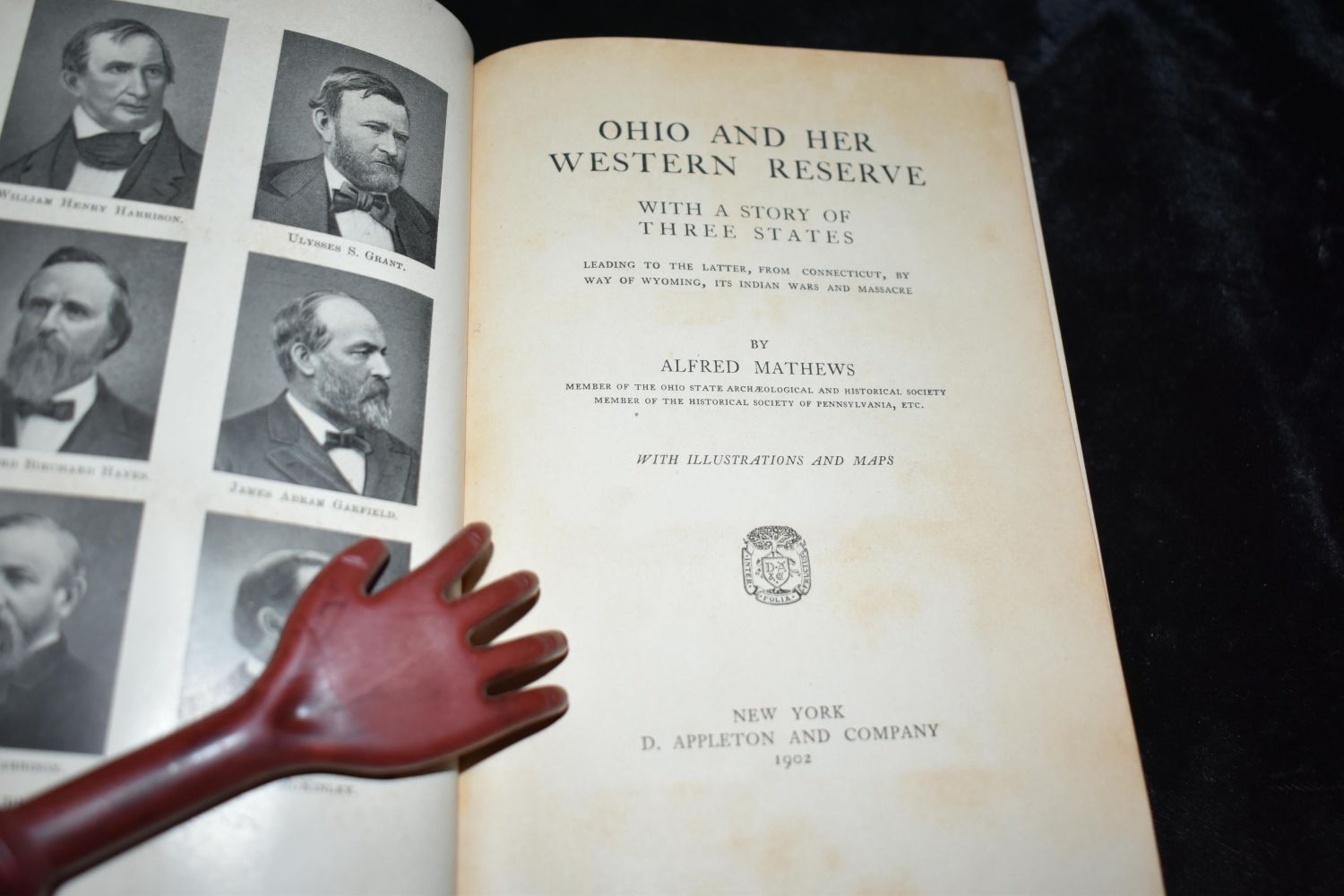 Ohio And Her Western Reserve, With A Story Of Three States, Leading To The Latter, From Connecticutt, By Way Of Wyoming, Its Indian Wars And Massacres by Alfred Mathews. Published by D. Appleton And Co, New York (1902). 1st Edition. Excellent condition. Publishers original red cloth hardback with gold gilt to cover and spine. 330 pgs. 7 1/2" by 5 1/4"