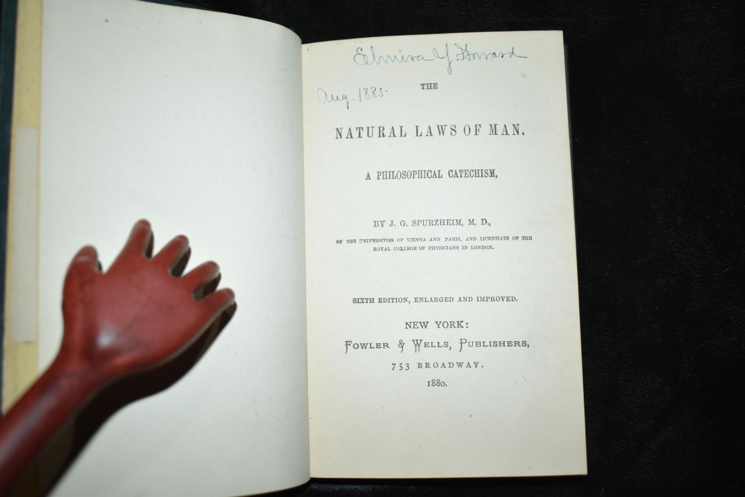 The Natural Laws of Man : A Philosophical Catechism by J G Spurzheim. Published by New York, Fowler and Wells 1880. Very Good condition. Publishers original black cloth hardback with gold gilt to spine. 171 pgs plus ads. 8" by 4".