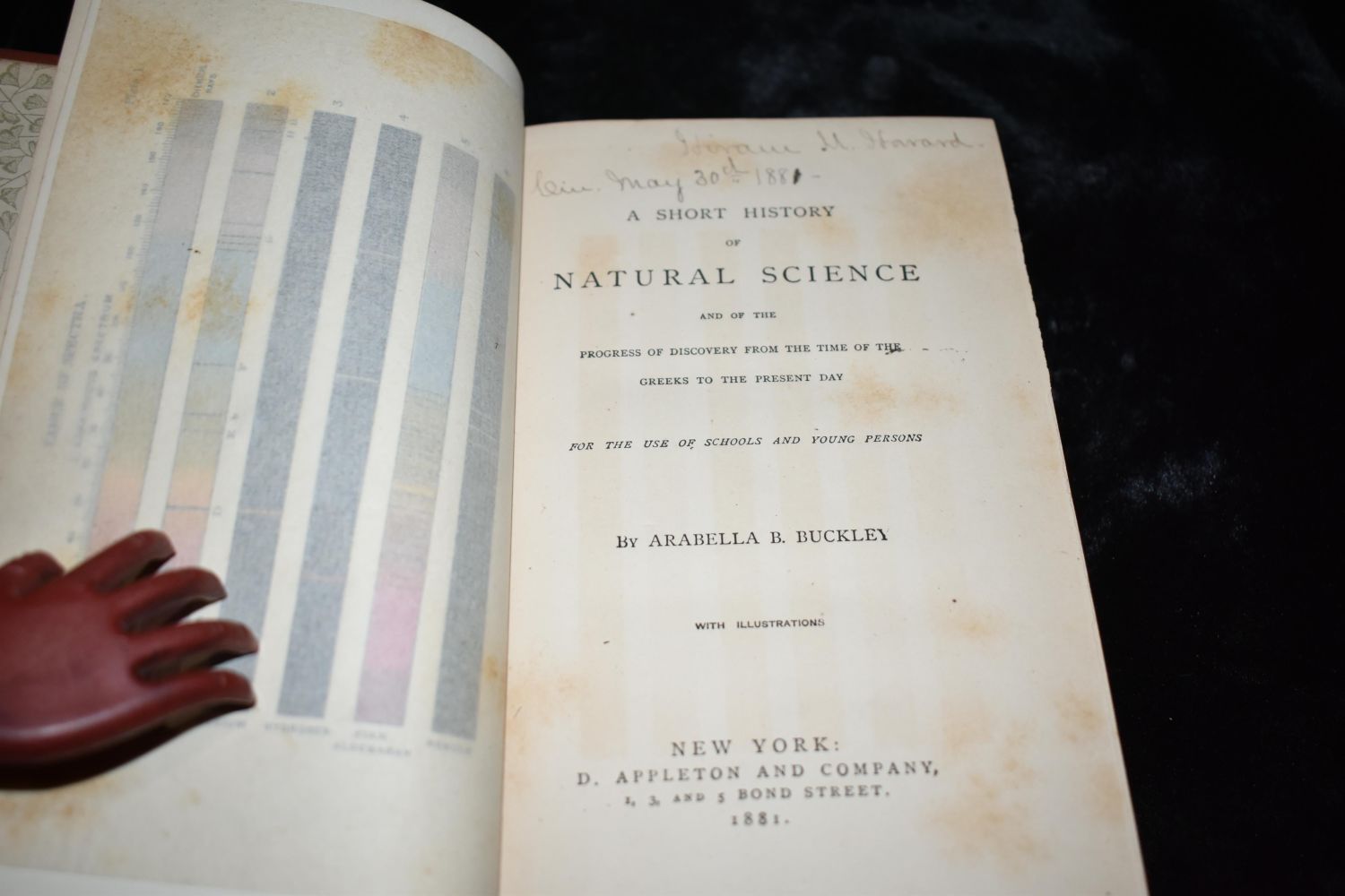 A Short History of Natural Science and of the Progress of Discovery from the Time of the Greeks to the Present Day by Arabella B. Buckley. Published by D. Appleton & Company, New York (1881). Very Good Condition. Minor shelf wear to corners. 467 pgs plus ads. 8" by 5 1/2"