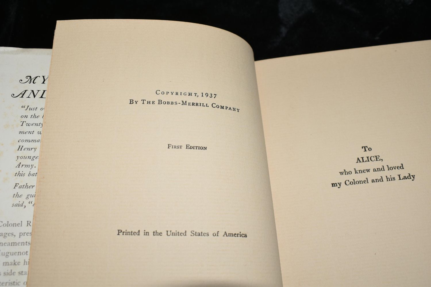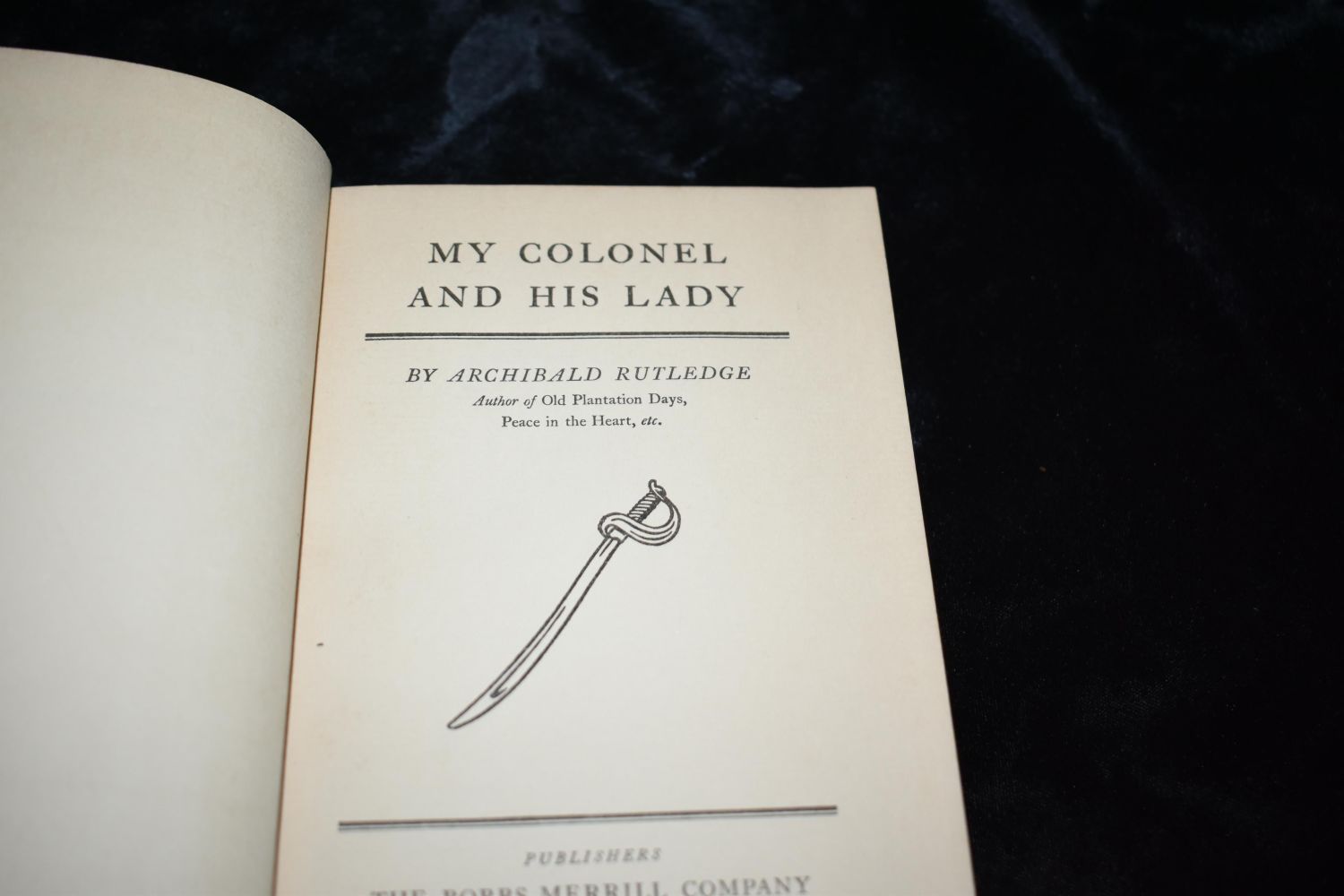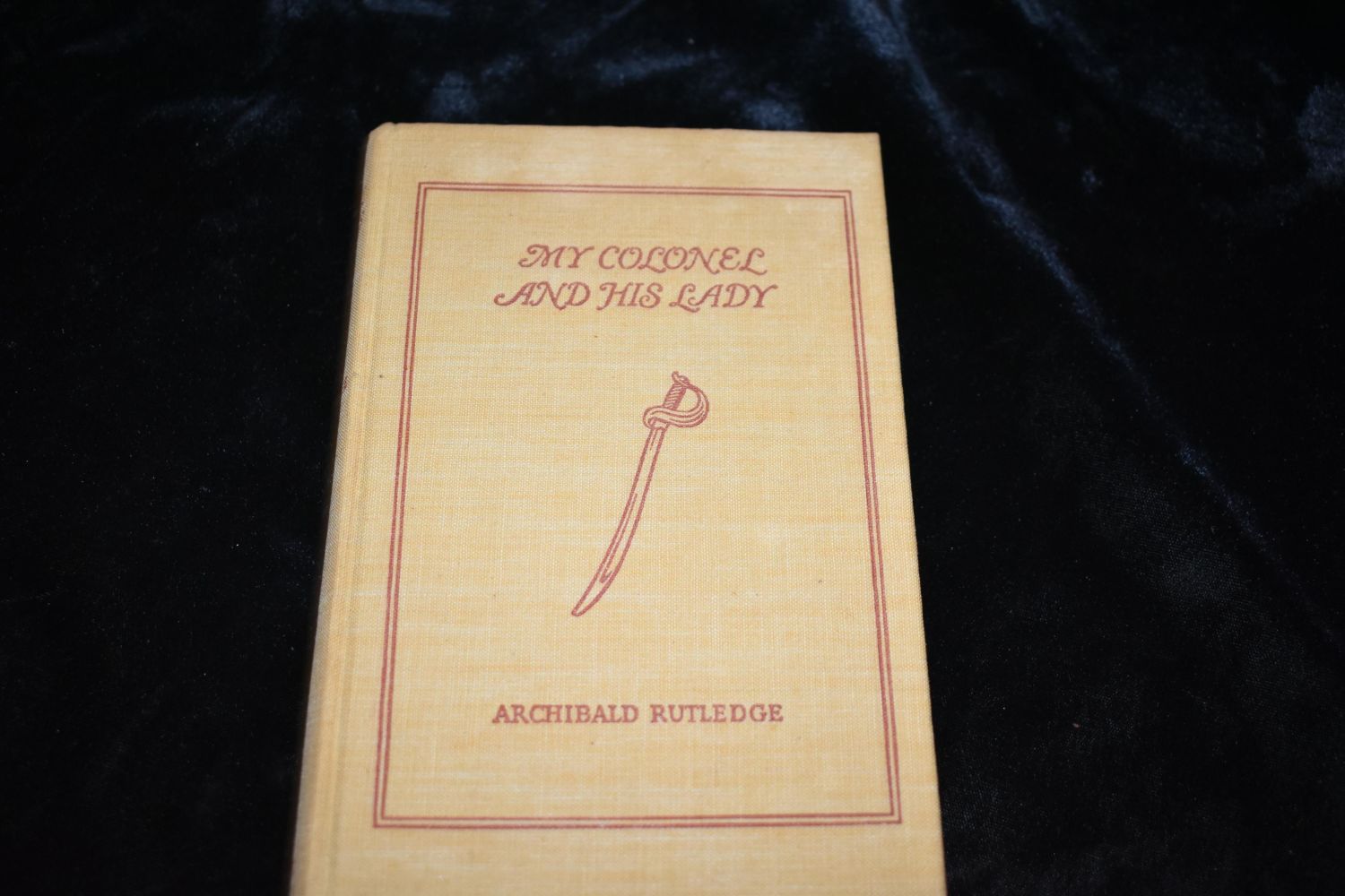 My Colonel and His Lady by Archibald Rutledge. Published by The Bobbs-Merrill Company, Indianapolis (1937). 1st Edition. Excellent condition with original dust cover. Publishers original baige cloth hardback with red print. Decorative in sheets. 189 pgs. 7 1/2" by 5 3/8"