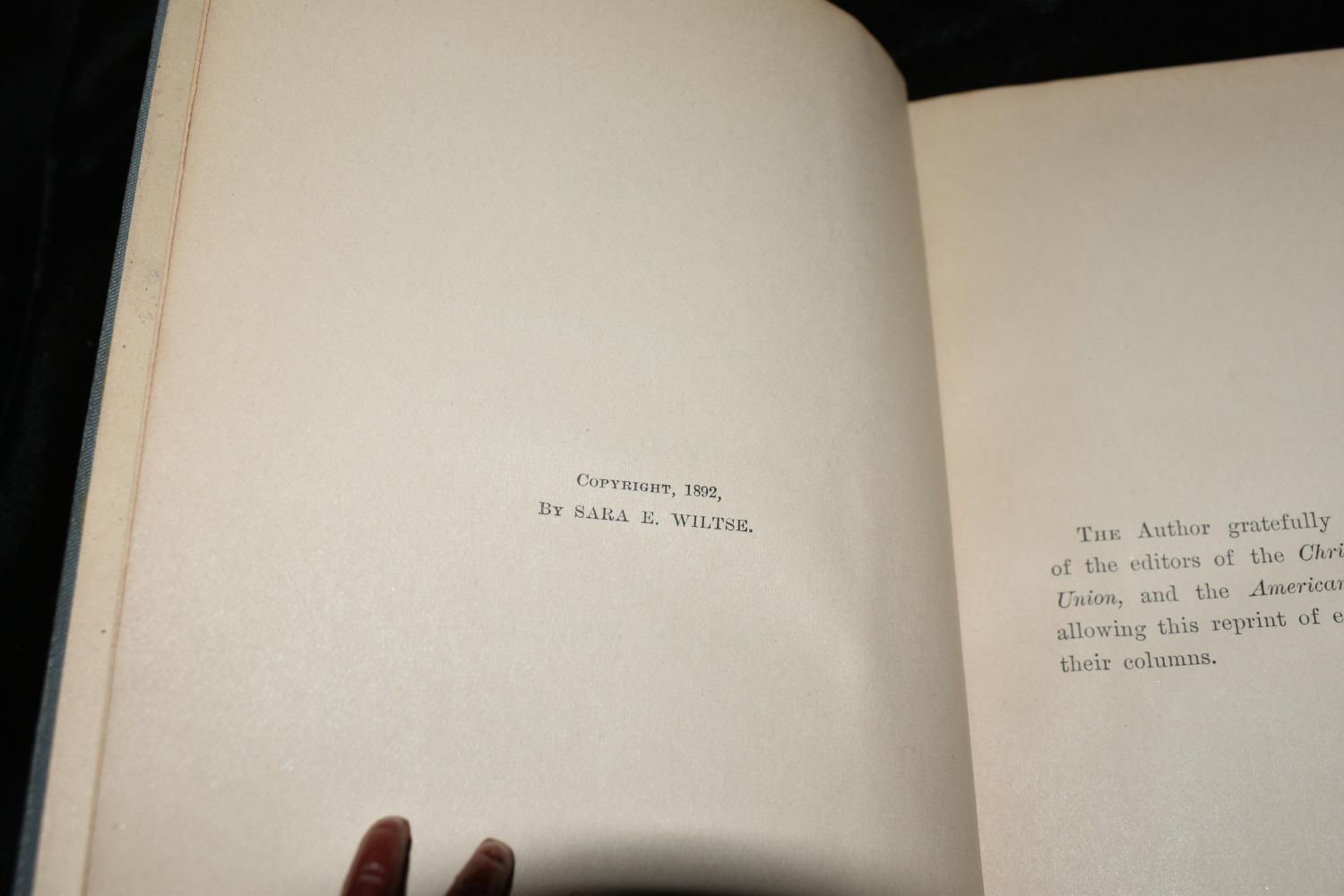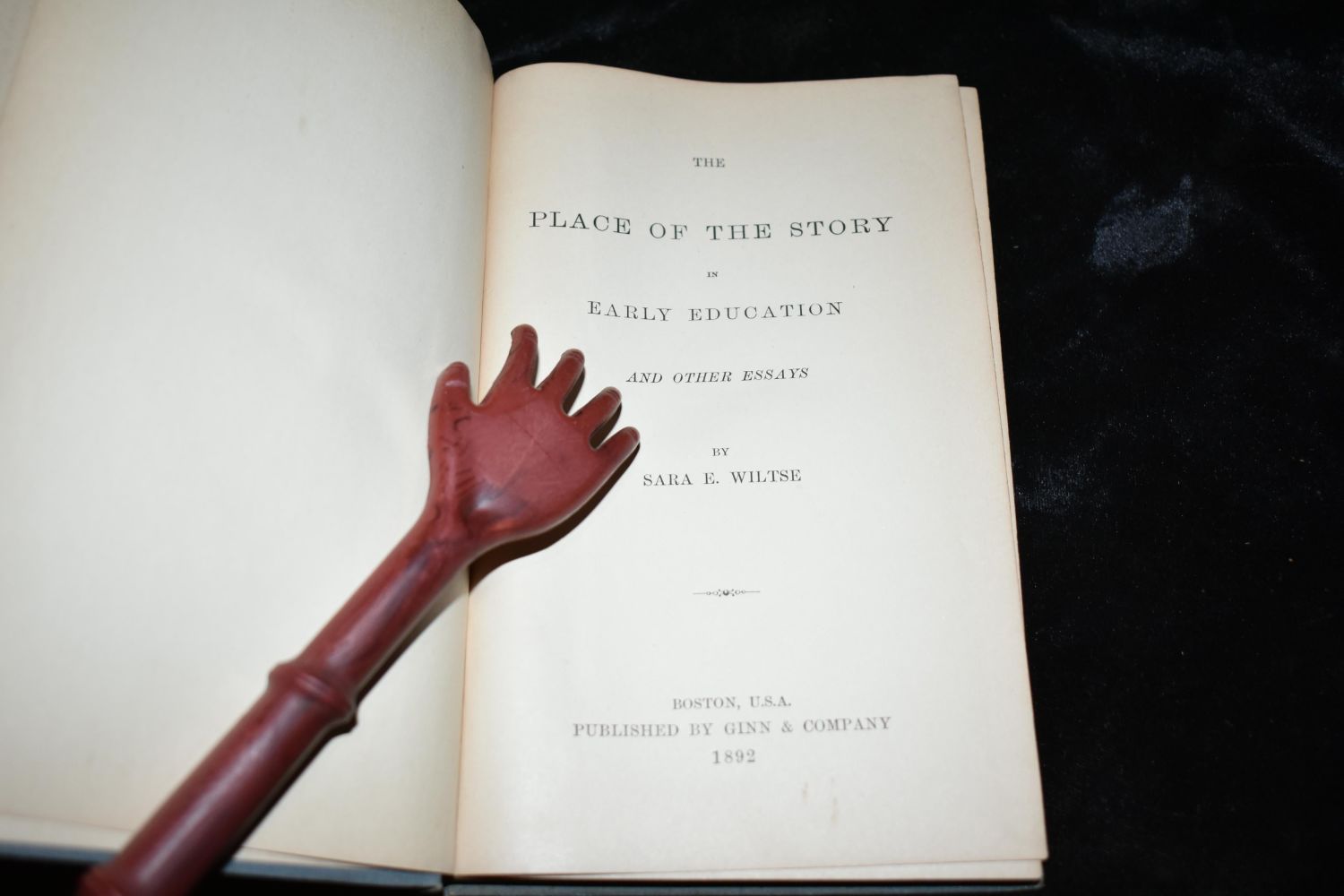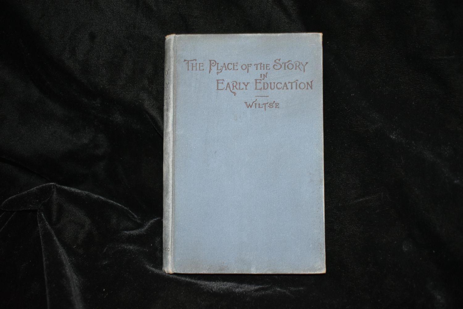 The Place of the Story in Early Education and Other Essays by Sara E. Wiltse. Published by Ginn & Company, Boston (1892) 1st Edition. Very Good condition. Minor wear to corners and a little fading to the spine. Publishers original blue cloth hardback with brown print to cover and spine. 132 pgs plus ads. 7 3/8" by 5"